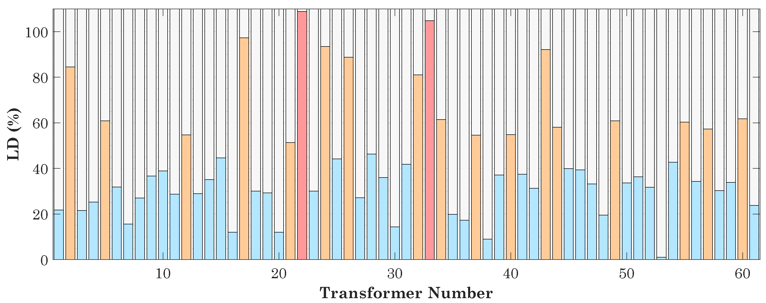 Figure 4 shows the LD of the transformers in the urban area without the integration of DG.