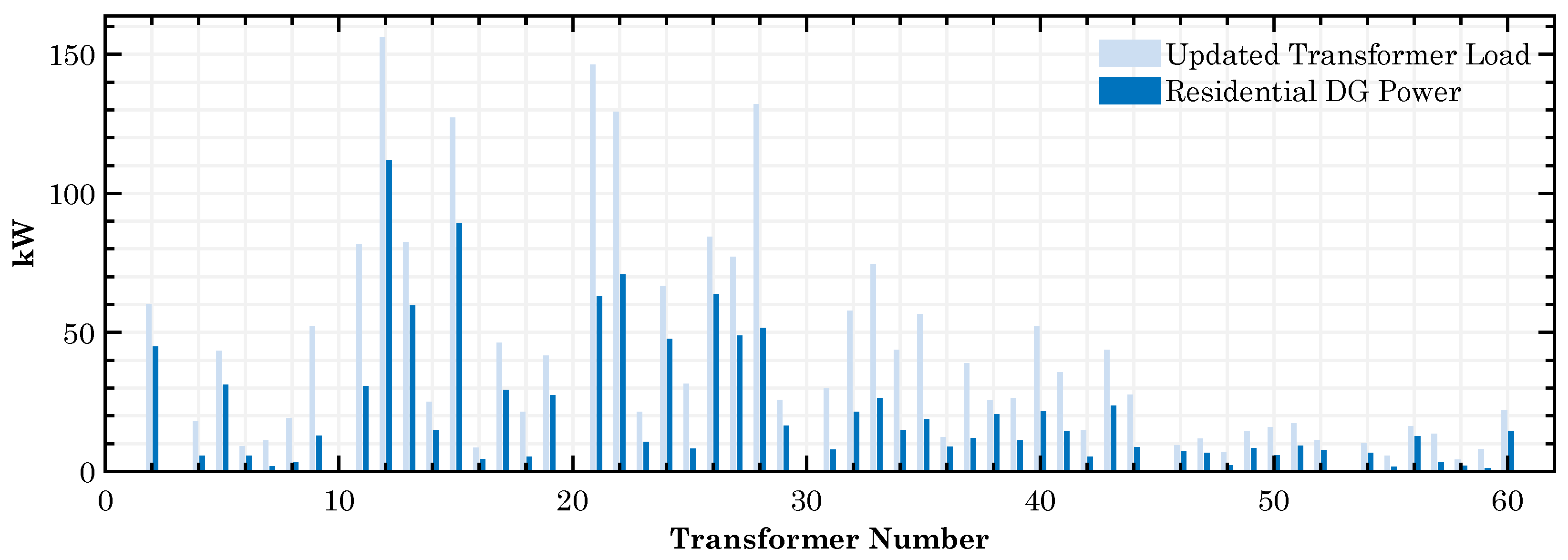 Figure 8 illustrates the new LD levels of all transformers after the integration of residential DG.