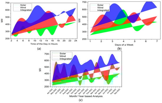 Power generation output analysis based on (a) time, (b) days, (c) month/year.