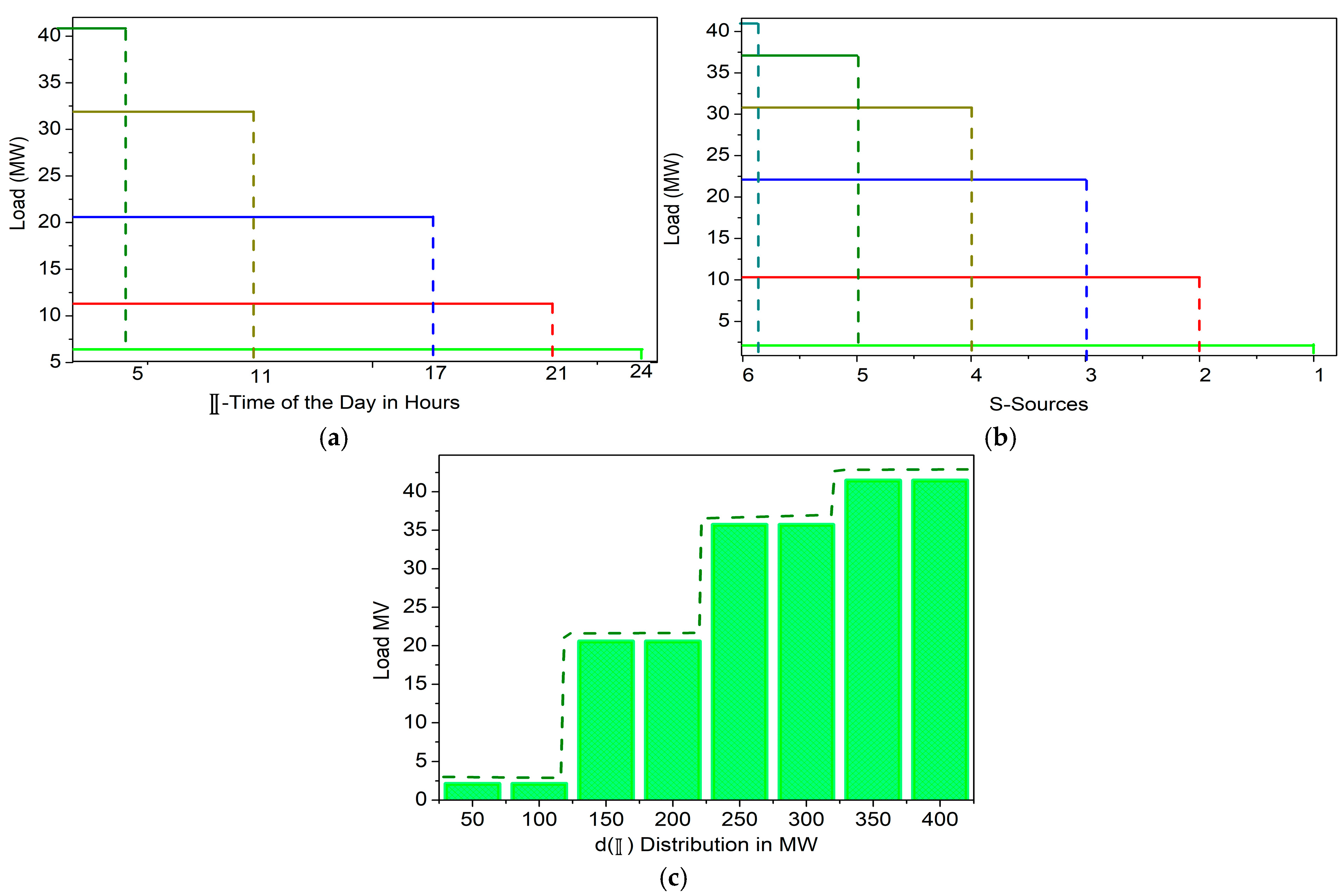 The variables are multiplicatively connected within each interval, and Equation (1) explicitly characterizes the accumulated power as a summation over the relevant intervals. More precisely, the instantaneous contribution for each period is calculated by multiplying the interval time, the power-sharing indicator, and the normalized count of active renewable energy sources. These products are then added for each period to determine the overall cumulative power. This approach clearly establishes a mathematical relationship between the variables by first evaluating the product of the relevant variables per interval and then aggregating them by summation. The system’s ability to modify or shift electrical demand in response to supply–demand scenarios within a specified distribution interval 𝕀 is represented by the demand response term