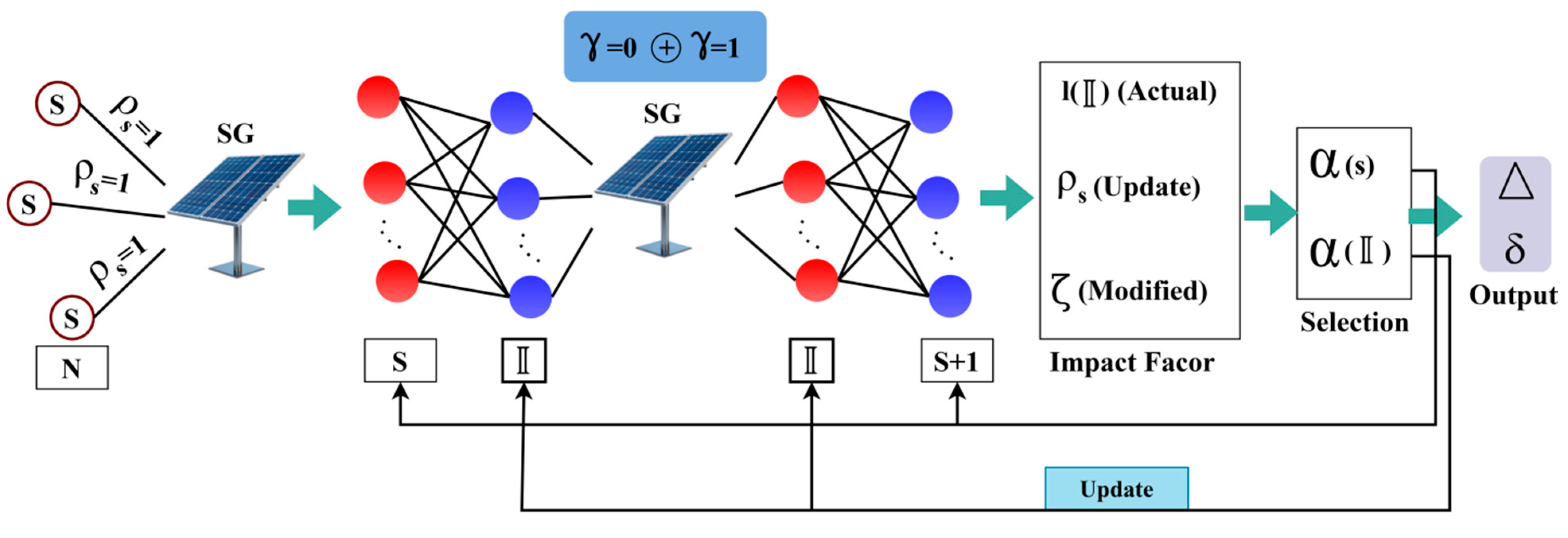 . The learning network’s parameter (selection) update concisely identifies the problem in energy distribution. Therefore, SG is integrated with the selective