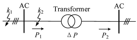 Specifically, when the flexible AC/DC microgrid equipment is operating normally or in the event of a fault outside the zone, the power difference ΔP between the two terminals of the component is a certain value due to internal characteristics and other factors. ΔP = P1 − P2 = ΔP * (t) is a time-varying variable, and its overall value is relatively rather small compared to the case of a fault within the zone. The time-varying characteristics of ΔP * (t) differ among different equipment. Then, DC lines, transformers, and interconnected converters will be use as examples to illustrate their ΔP * (t).