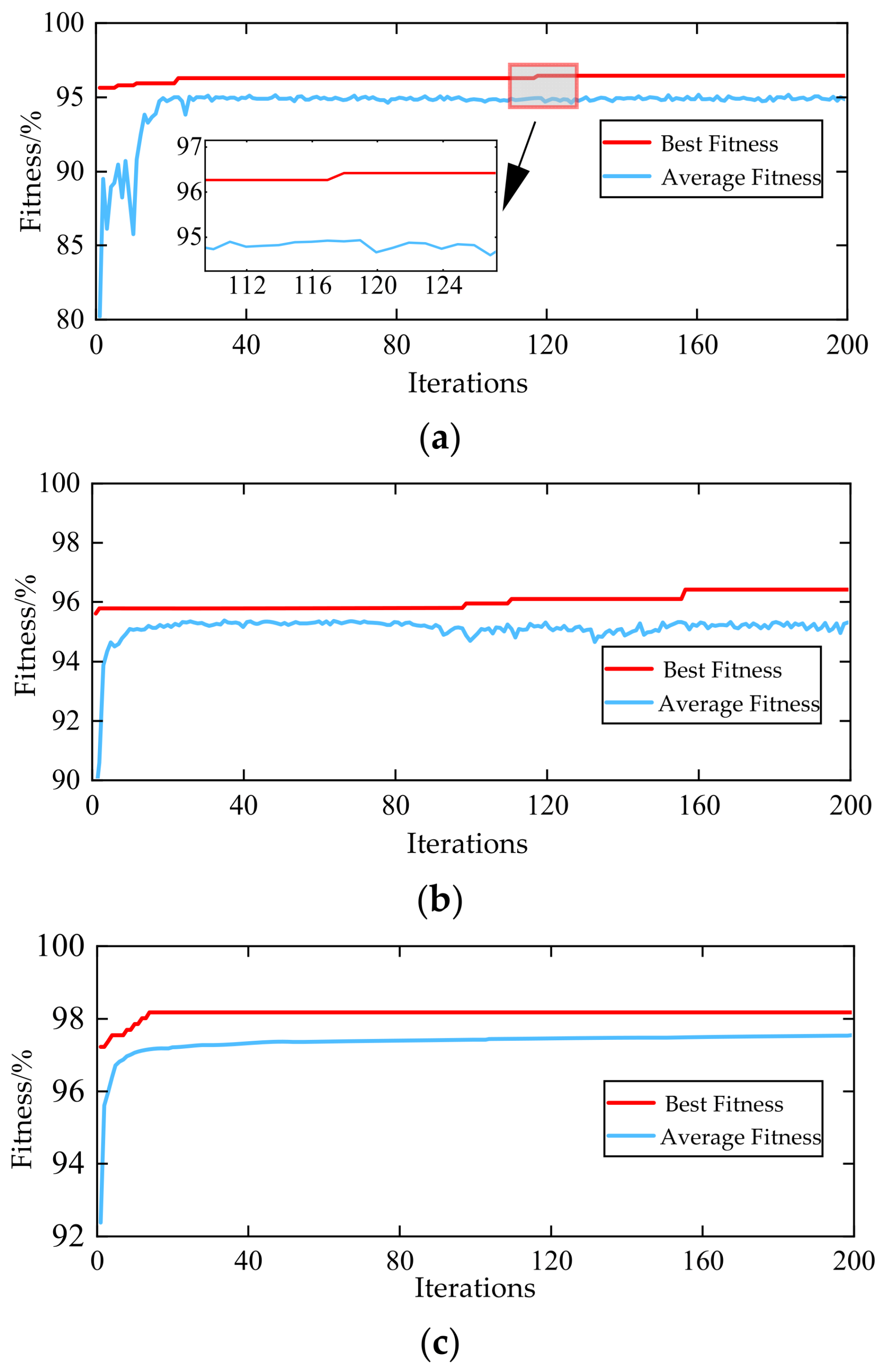 The results indicate that the selected optimal feature subset encompasses information from various aspects of different IMF components. IMF4 was selected multiple times, suggesting that its corresponding mid-frequency band effectively reflects the differences between inrush and fault currents in terms of amplitude, spectral concentration, and peak characteristics. The Sample Entropy values of IMF3, IMF5, and IMF2 capture the differences in stochastic complexity within their respective components. Conversely, the Frequency Variance of IMF1 highlights the distinct energy distribution in the highest frequency band. By combining time-domain, frequency-domain, and nonlinear features from different components, the model is equipped to comprehensively discern the inherent differences between the two types of currents.
