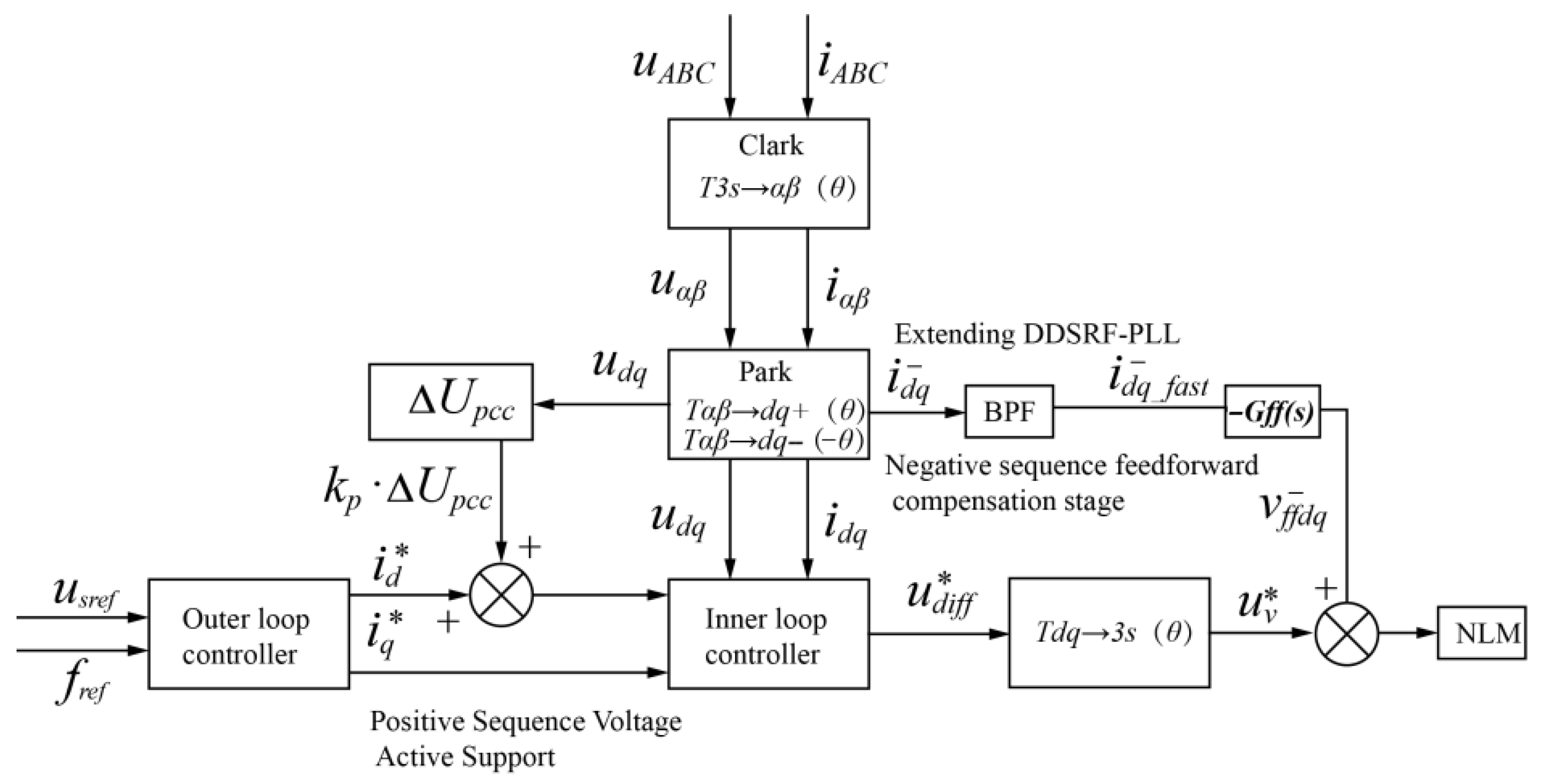 The control system for the positive- and negative-sequence coordinated feedforward control is shown in