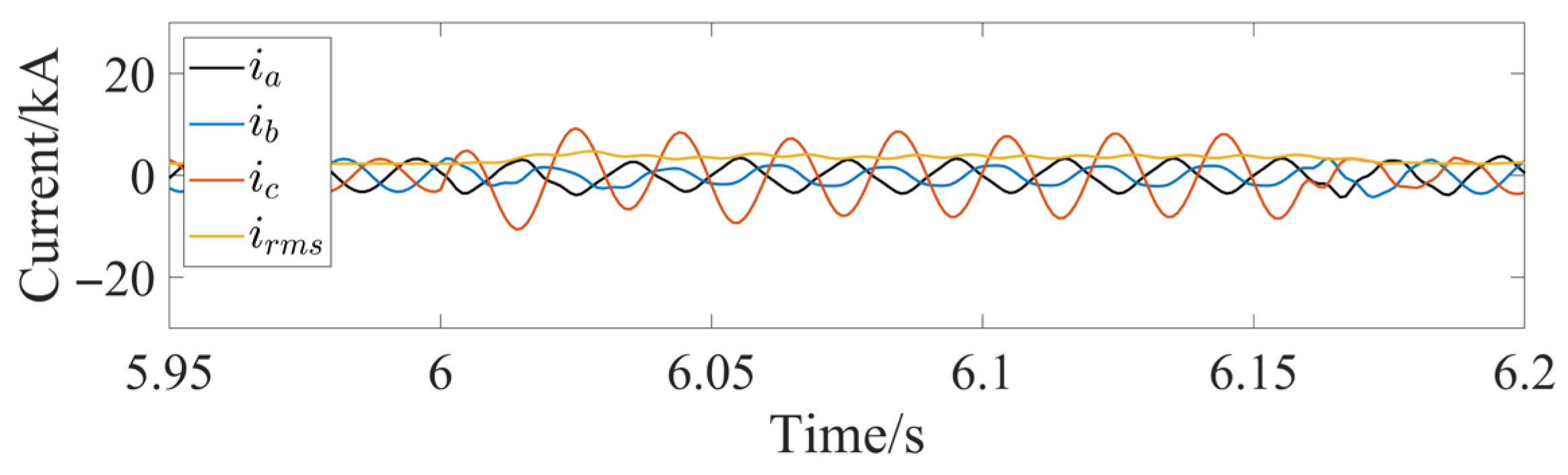 Table 1, the positive-sequence impedance uses a low inductive reactance to minimize the impact on the active power transmission and maintain a stable positive-sequence voltage at the point of common coupling. To limit the fault current magnitude at the source, a high inductive reactance is employed to increase the path impedance of the negative-sequence current. This approach effectively reduces the stress on the bridge arm current and prevents excessive damage to the insulated-gate bipolar transistor (IGBT).