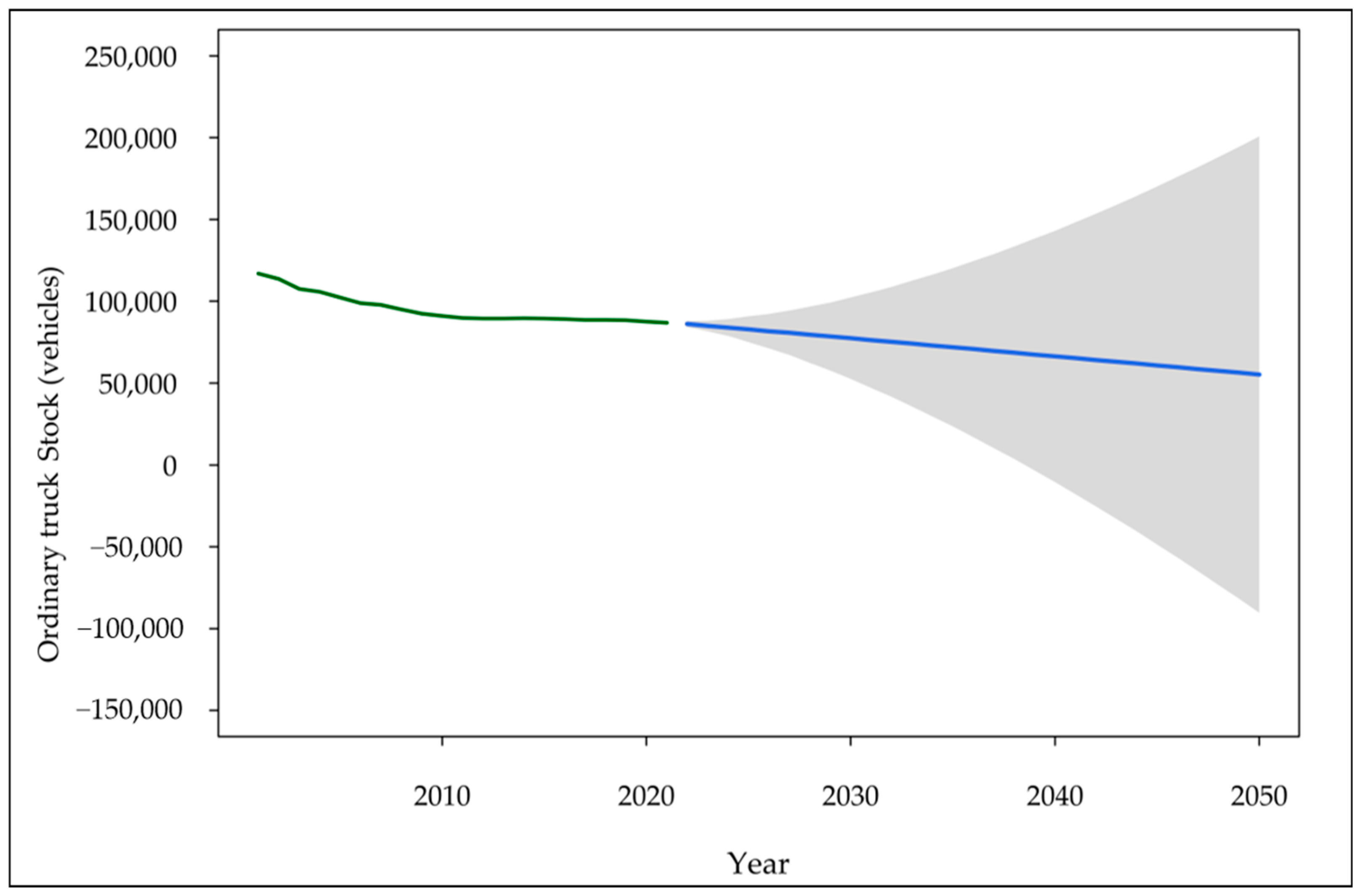 | Ordinary truck | 769.10 | 749.70 | 602.90 | 464.10 | 348.00 | 250.40 | 165.80 | 14,245.40 |