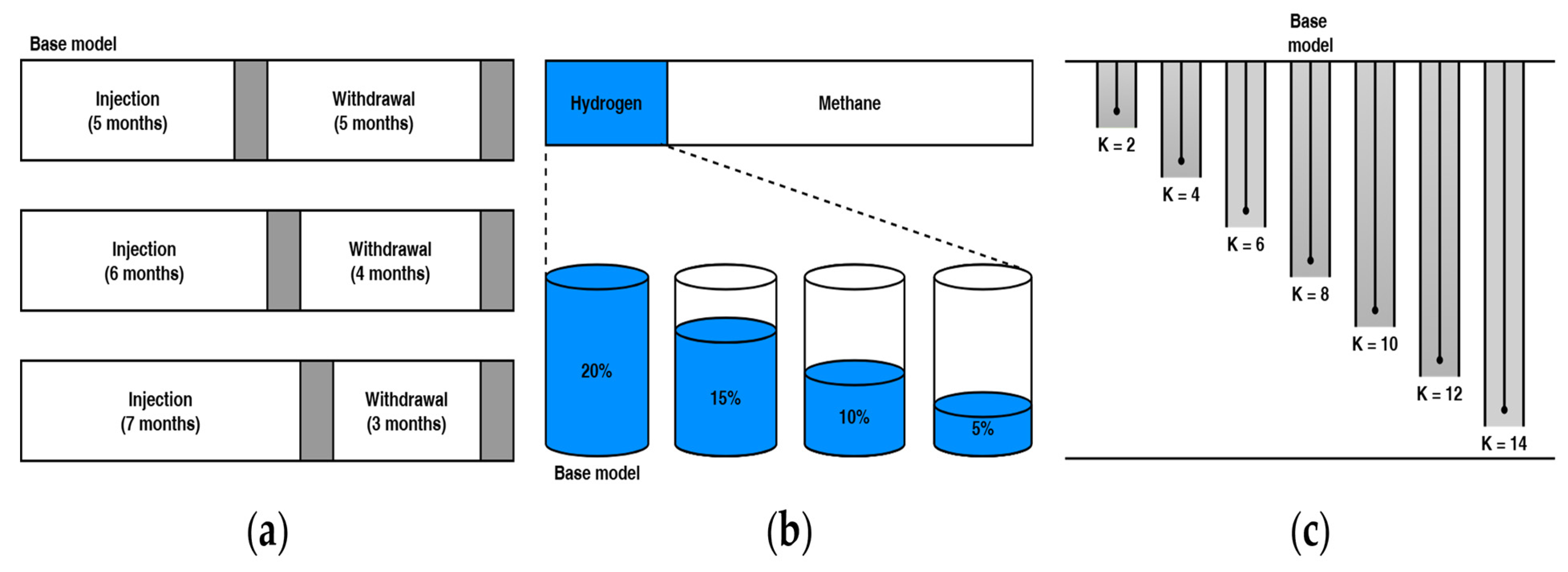 | Scenario Group | Case ID | Shut-In | Injection Period (Months) | Withdrawal Period (Months) | H2 Blending Ratio | Perforation Depth |