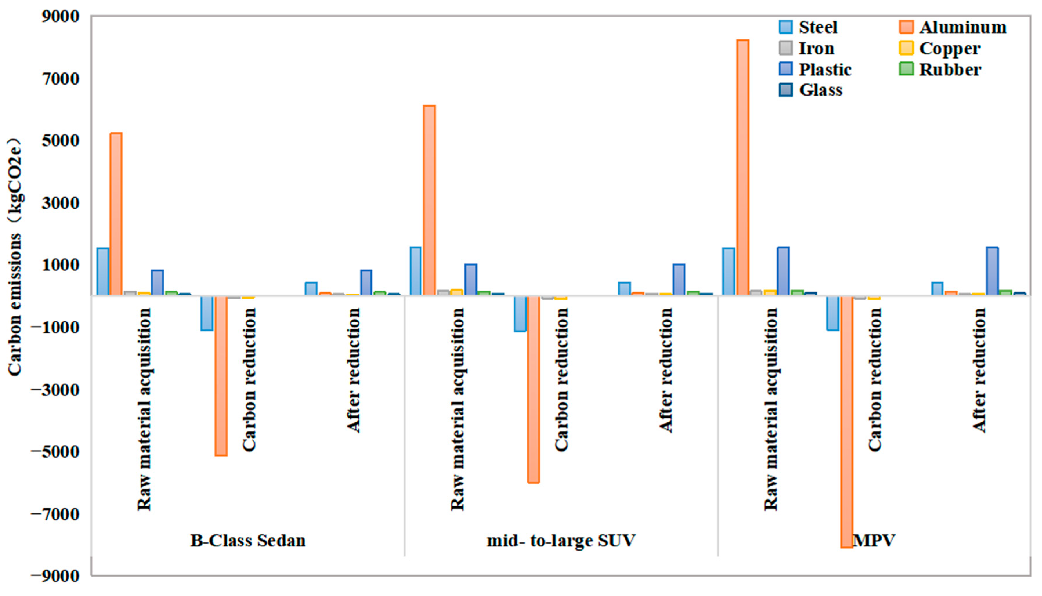 | Material | Recovery Rate (%) | Energy Consumption (kg/kg, m3/kg, kWh/kg) | Sedan | SUV | MPV | |||