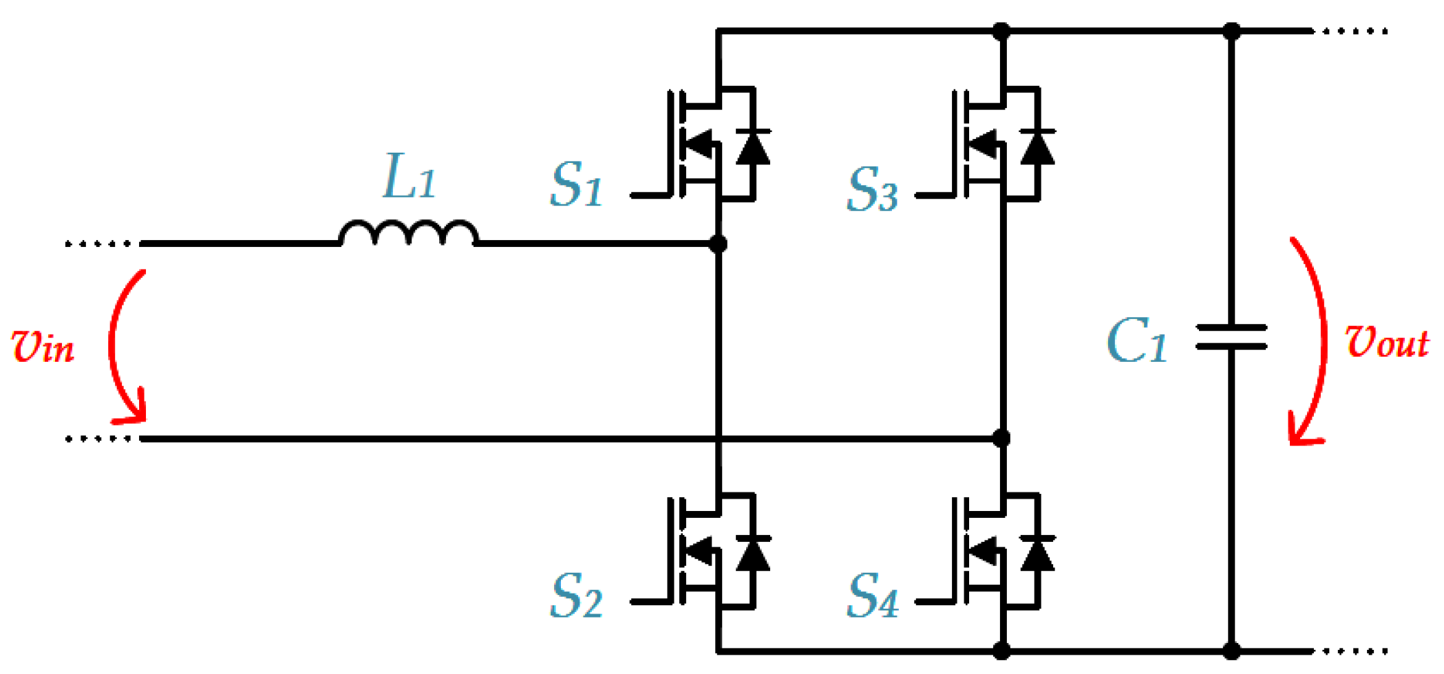 This topology enables bidirectional operation, meaning that the power electronics converter can function both as an inverter and as an active rectifier, depending on the control strategy employed. When operating in inverter mode, the converter transforms a DC voltage source into a single-phase AC output with controlled frequency and amplitude. In aerospace power systems, this configuration can be used in low-power motor drives, the interface of renewable energy systems, and traction vehicles [