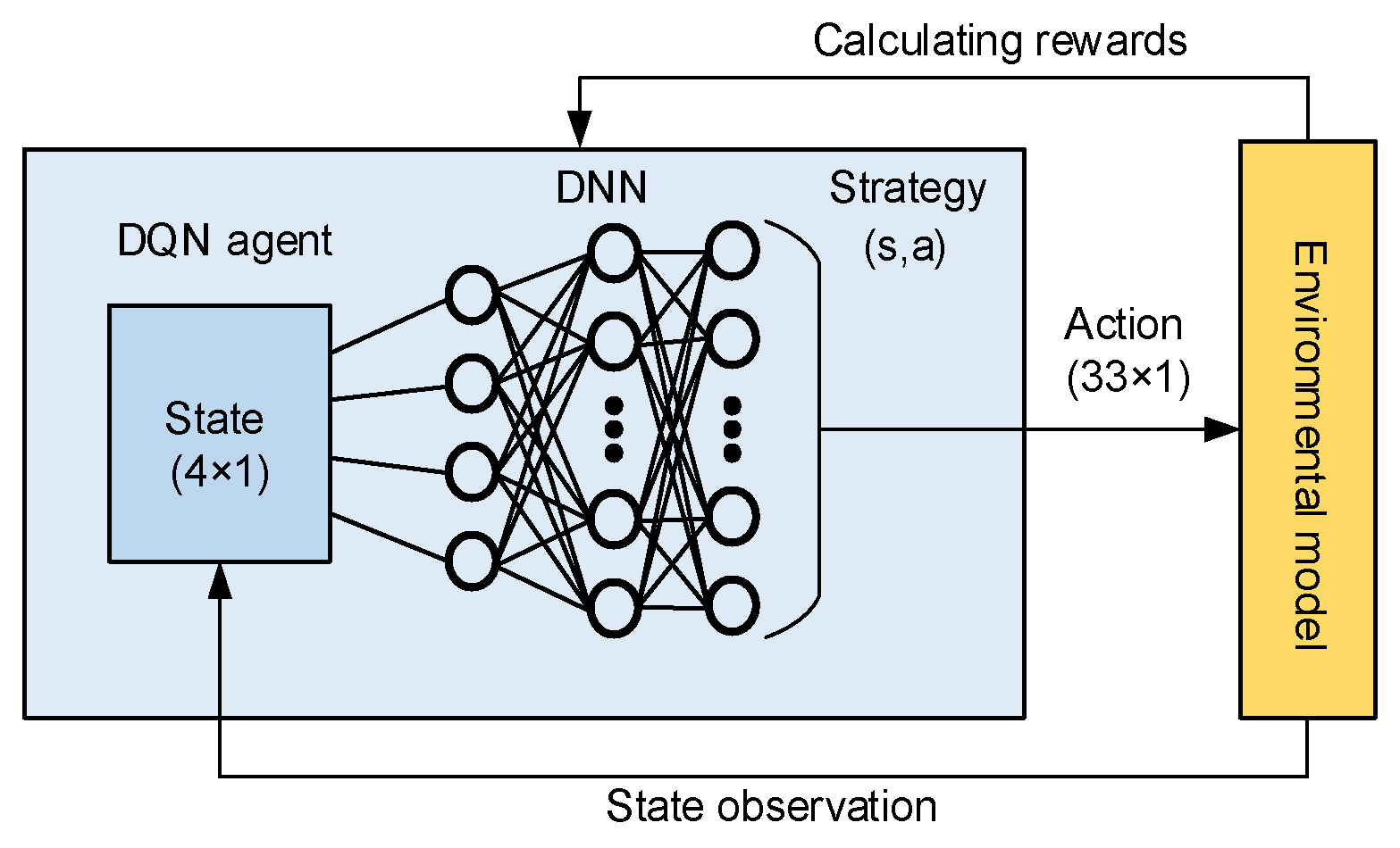 31], which enables the DQN to fit an approximate Q-function by learning from the continuous state space (e.g., (1)) and thereby predicting the expected rewards for each possible state–action pair