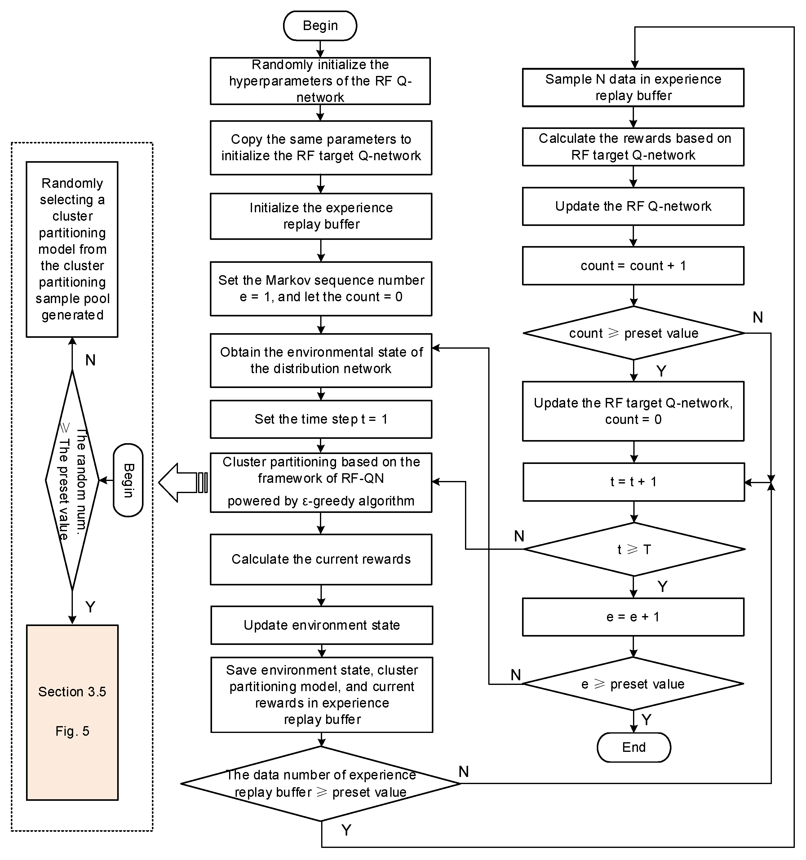 According to the ε-greedy algorithm, when the random number is larger than the preset value, the system will randomly select a cluster partitioning model from the sample pool; otherwise, the procedure will follow the process shown in