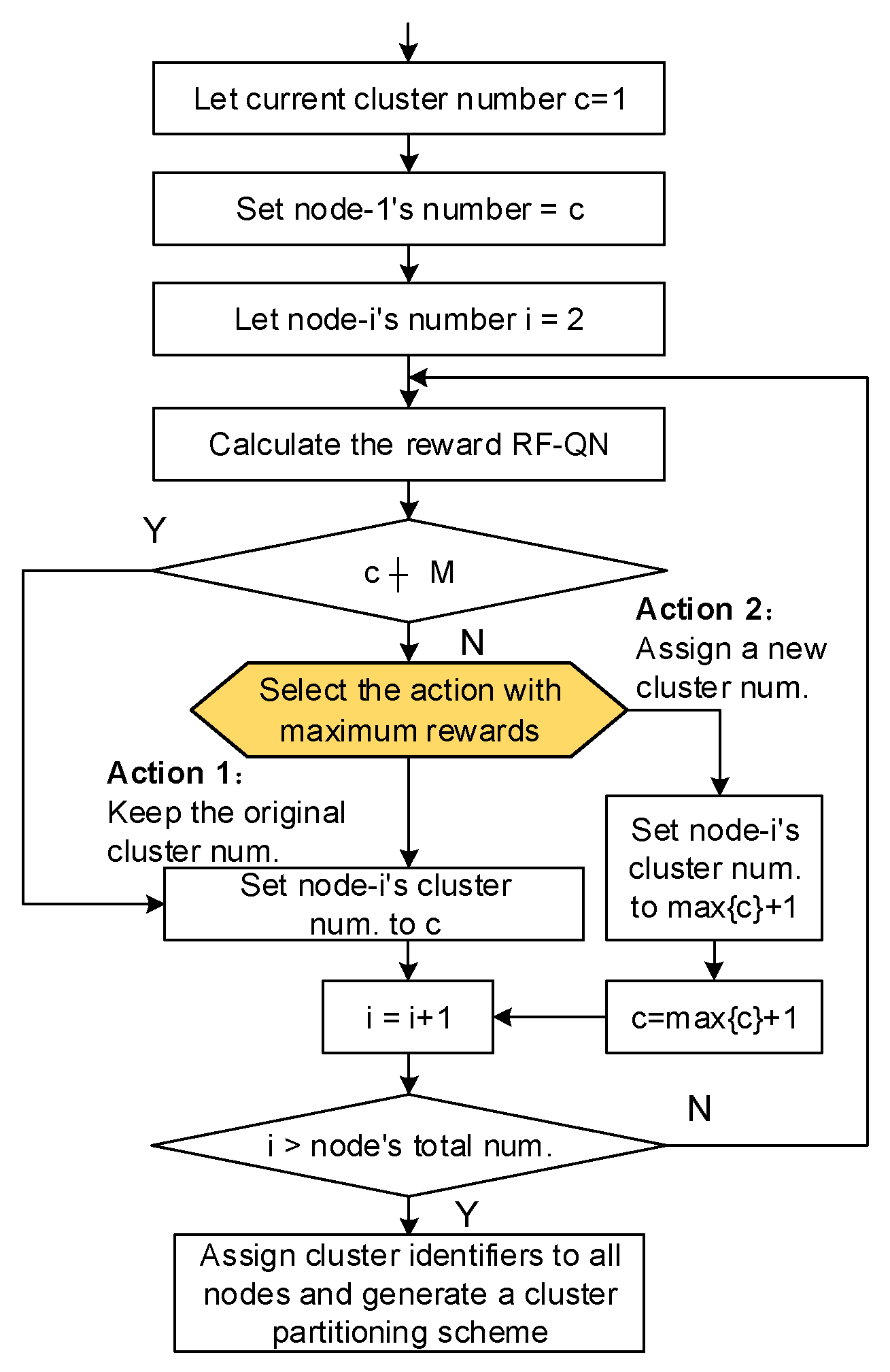 Figure 4 illustrates the detailed training procedure of the proposed RF-QN for dynamic cluster partitioning, which consists of the following steps: