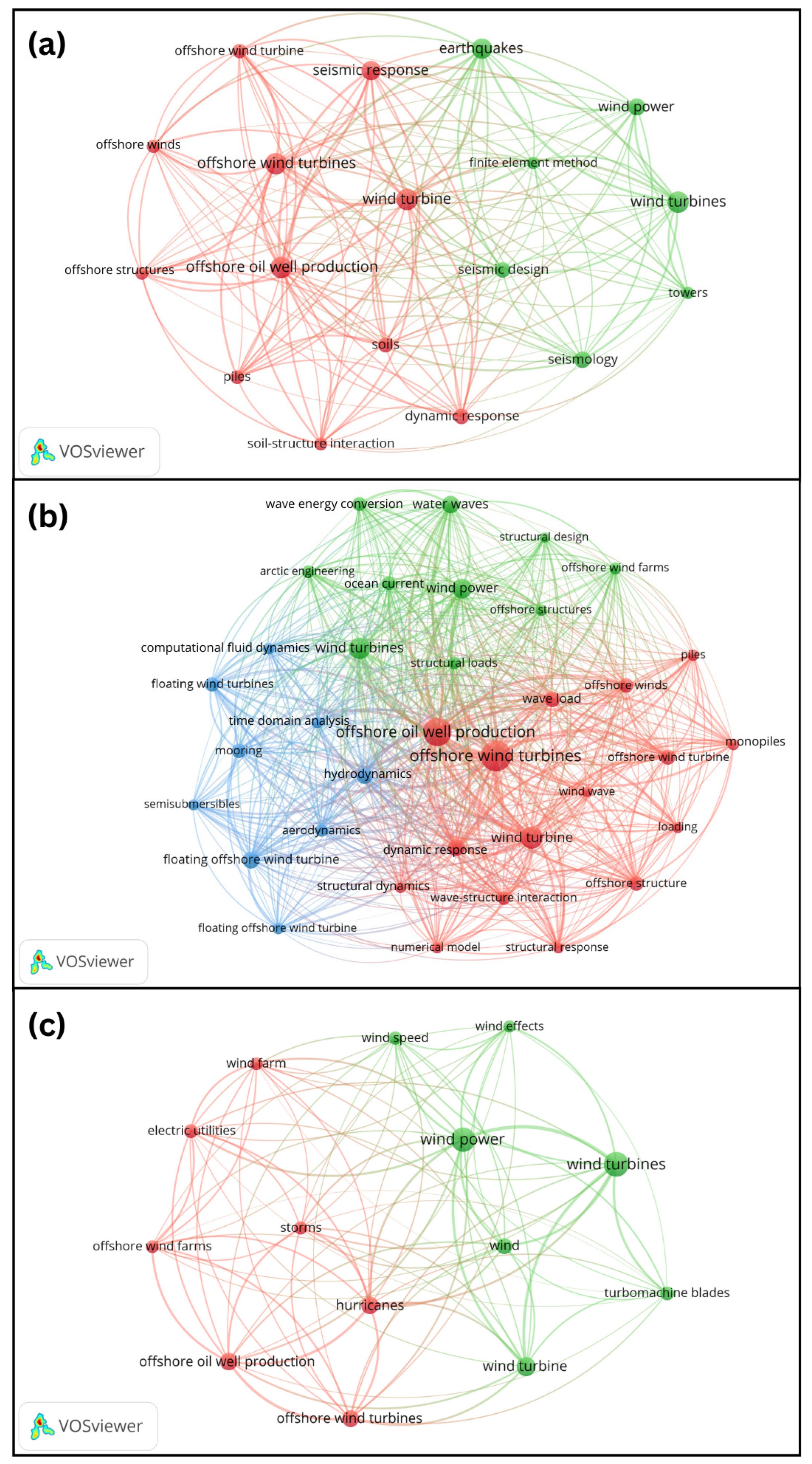 | Dominant/Distinct Keywords | earthquakes; seismic response; seismic design; seismology; soils; piles; soil–structure interaction; towers; finite element method; dynamic response; offshore structures; offshore winds | wave load; wave–structure interaction; water waves; wind wave; hydrodynamics; structural dynamics; structural response; structural loads; numerical model; time domain analysis; mooring; floating wind turbines/floating offshore wind turbine; monopiles; offshore wind farms; ocean current; wave energy conversion | wind; wind speed; wind effects; hurricanes; storms; electric utilities; wind farm; offshore wind farms; turbomachine blades |