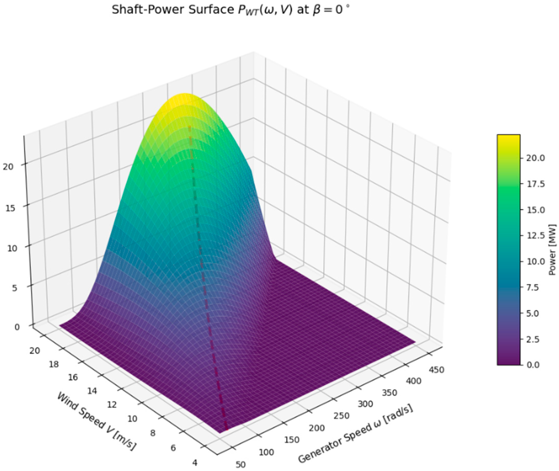 14]. Our empirical power-surface identification and the resulting MPP condition accord with that theory while motivating a constant-speed, pitch-only policy above rated—where capped MPP would otherwise push