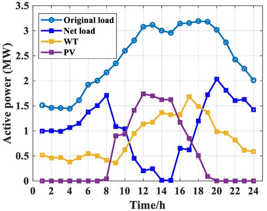 When DGs cannot meet load demand, ADNs require supplementary power supply from the main grid [17]. Accordingly, managers can design a reasonable TOU mechanism to guide users to shift consumption through price signals, smooth the net load curve, and reduce the peak–valley difference.