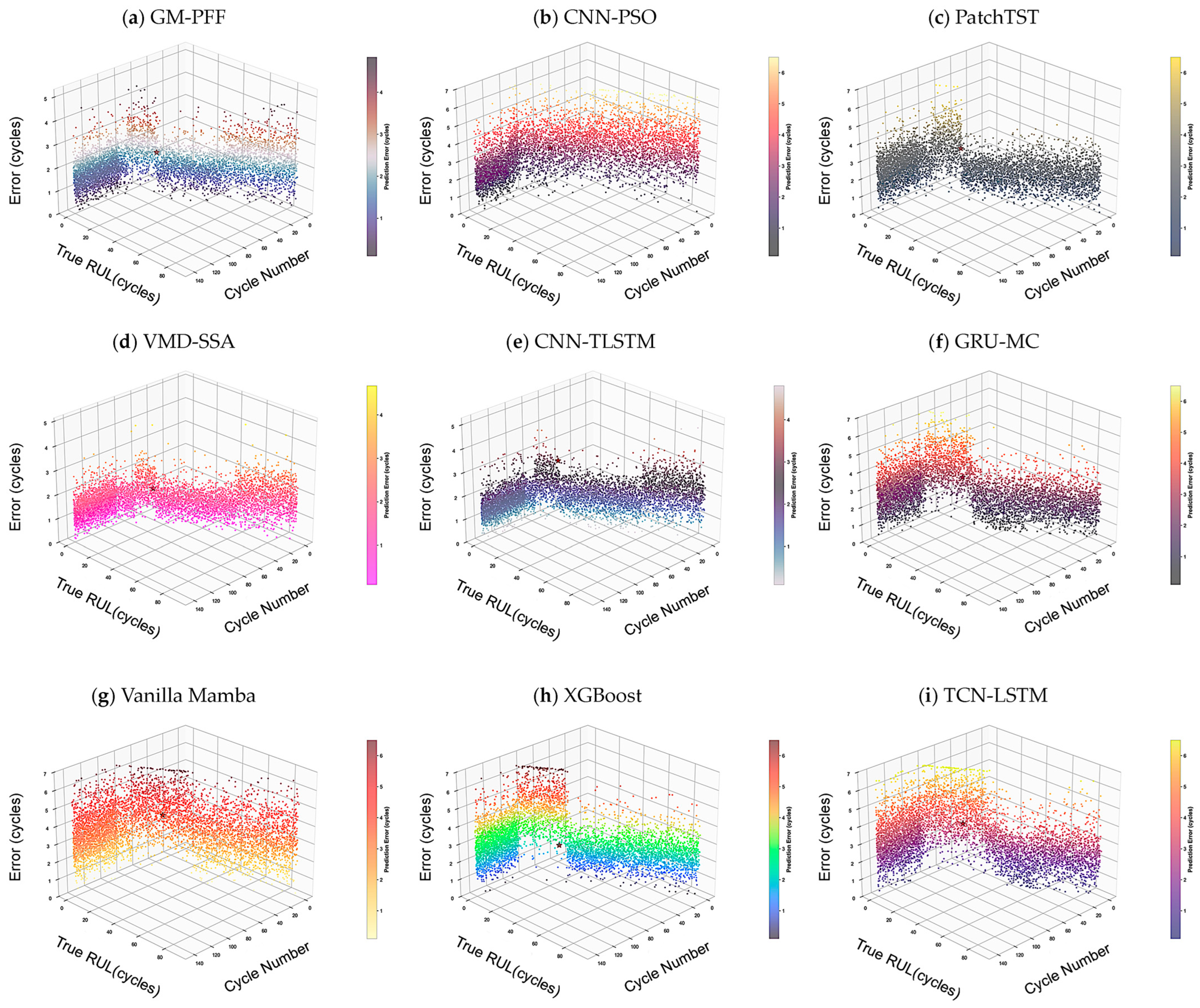 | NASA | B0005 | Early (30%) | GM-PFF | 6.7 ± 0.7 | 4.5 ± 0.5 | 3.7 ± 0.4 | 0.973 ± 0.005 | 4.2 ± 0.4 | 2.5 ± 0.3 |