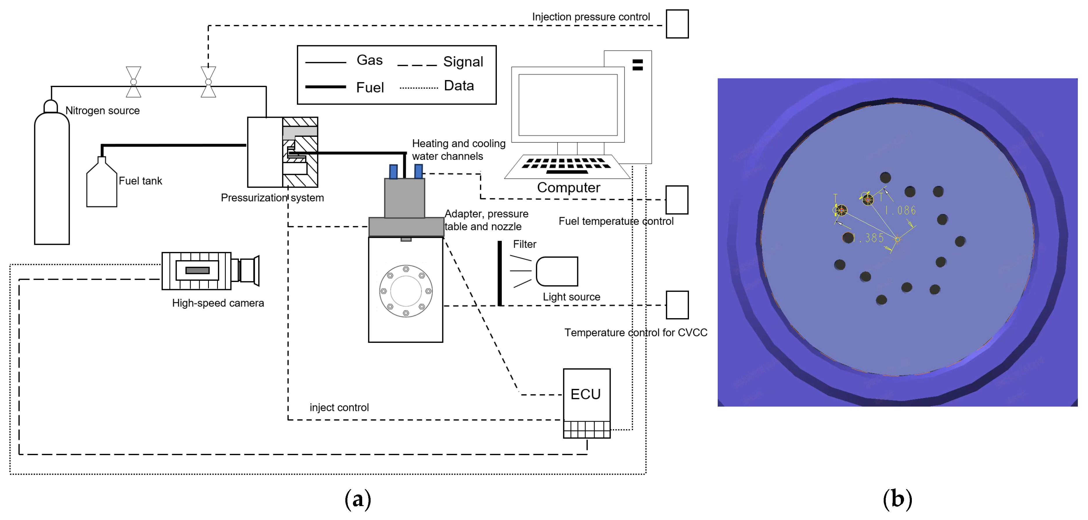 - Liu, K.; Chen, C.; Su, M.; Zhou, W.; Wang, Q.; Oppong, F.; Li, L.; Xu, C. Experimental study of the macroscopic characteristics of methanol low-pressure injection spray. Int. J. Energy Res. 2022, 46, 23259–23272. [Google Scholar] [CrossRef]