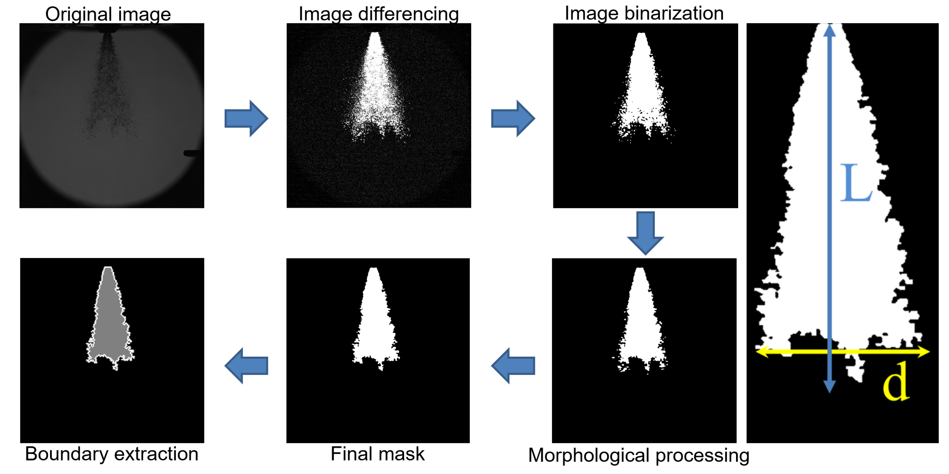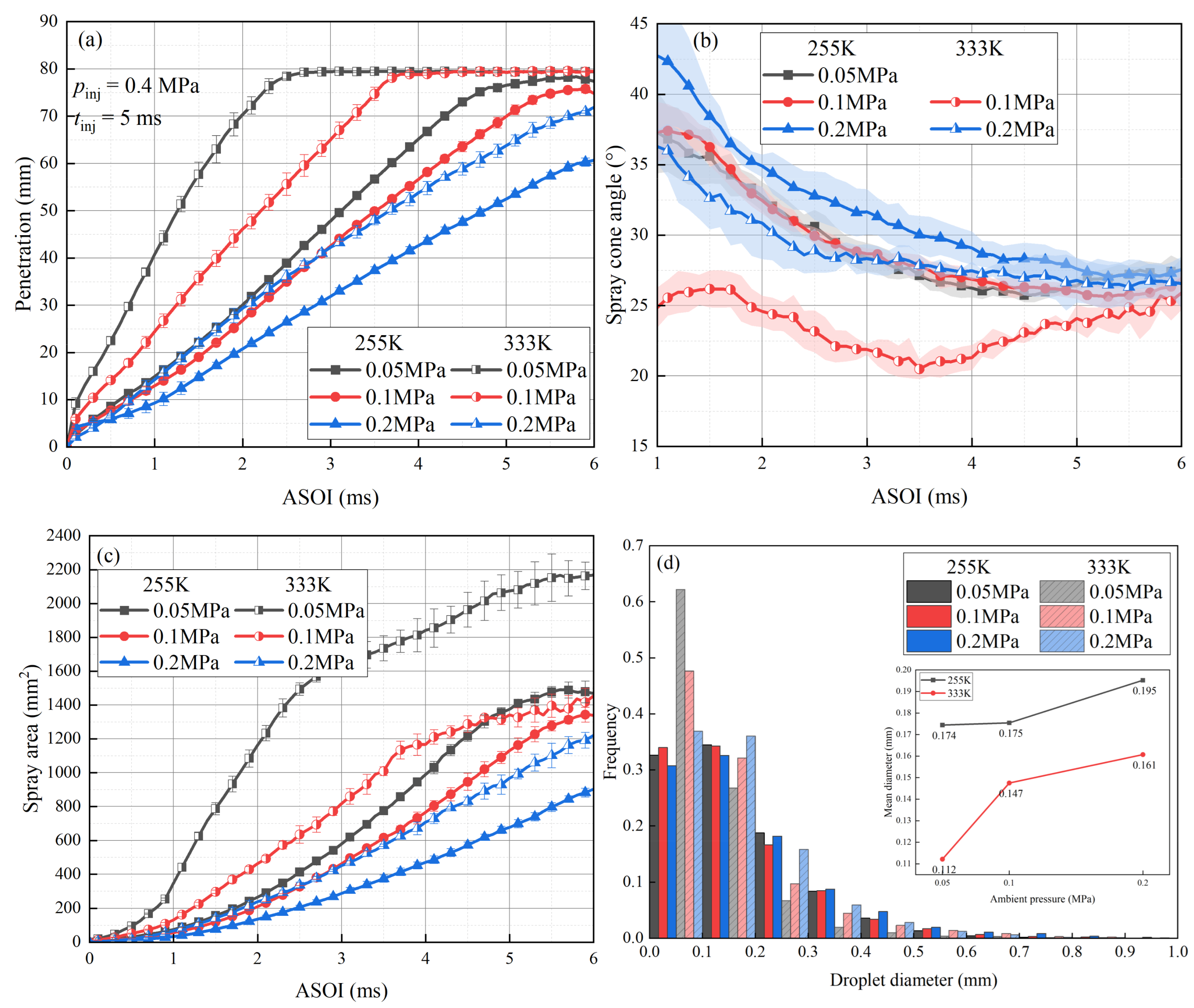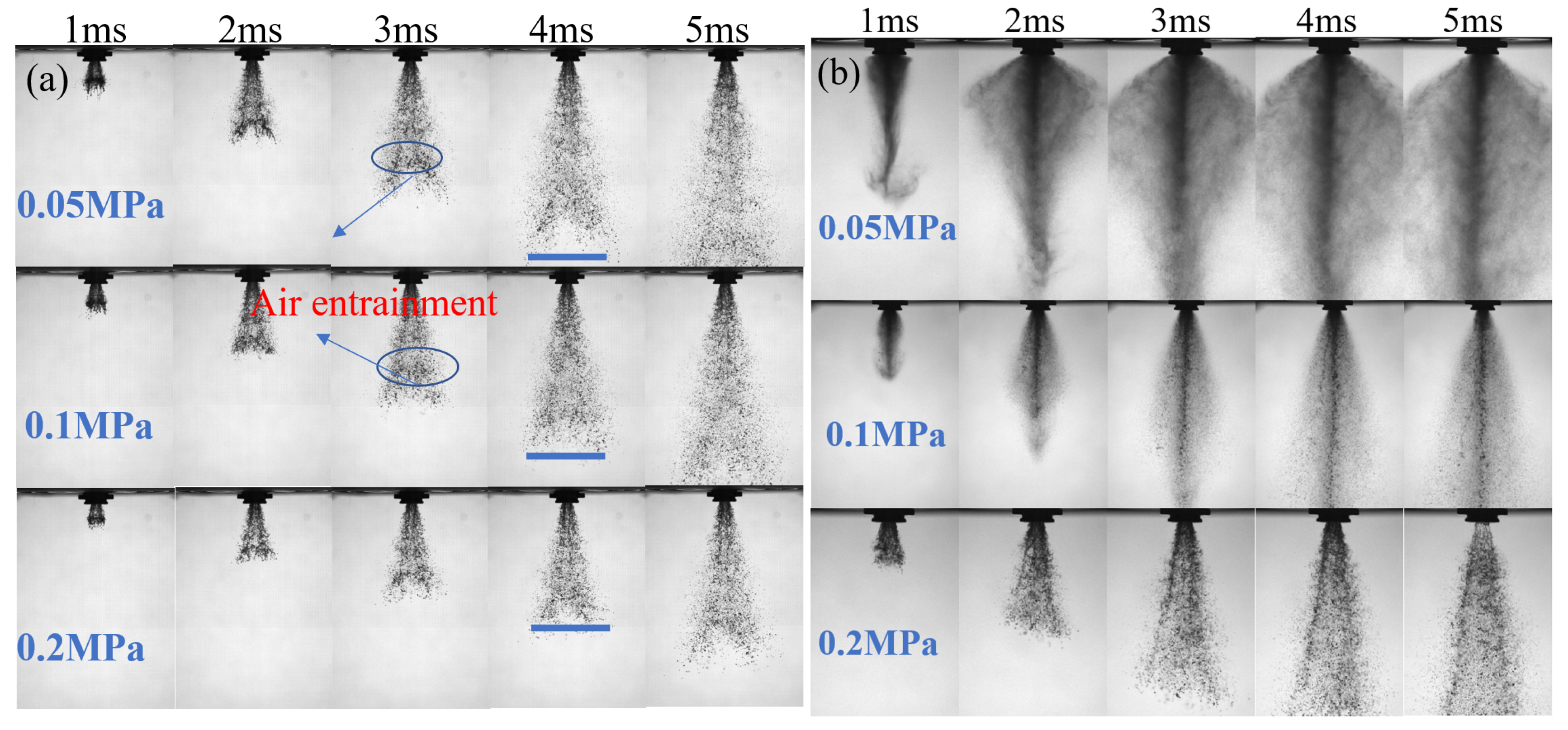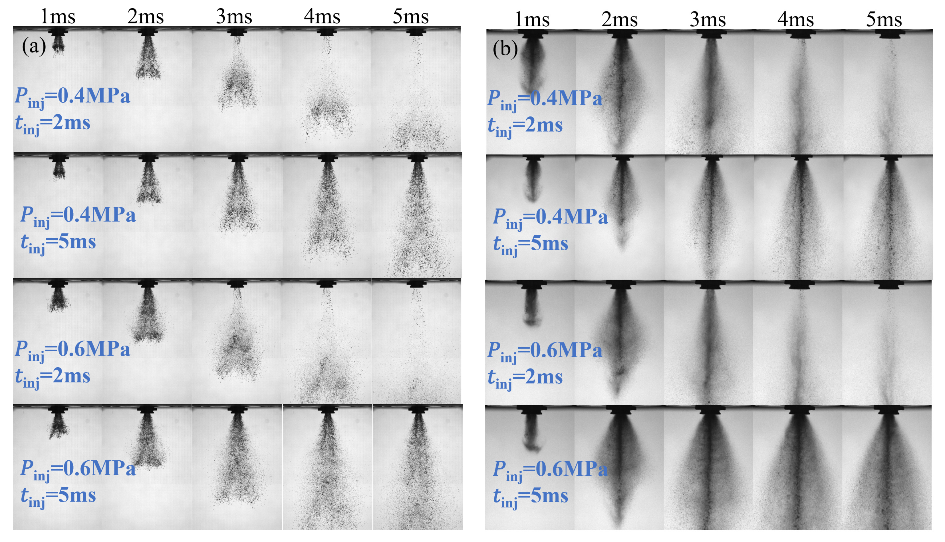 - Quantitatively investigate the evolution characteristics of methanol spray under low-pressure and low-temperature conditions relevant to engine cold start, with particular emphasis on spray penetration, cone angle, and macroscopic spray morphology;
