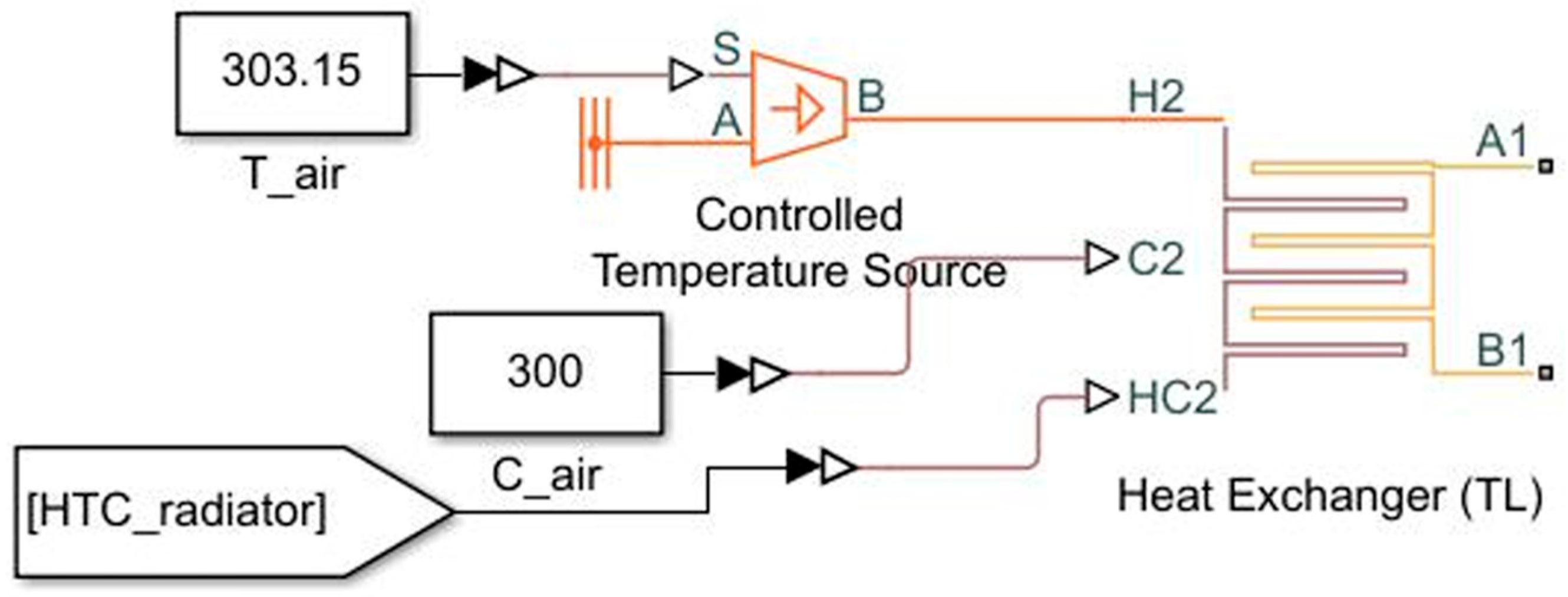 - The heat transfer coefficient input port HTC_radiator between the radiator pipe outer wall and air.