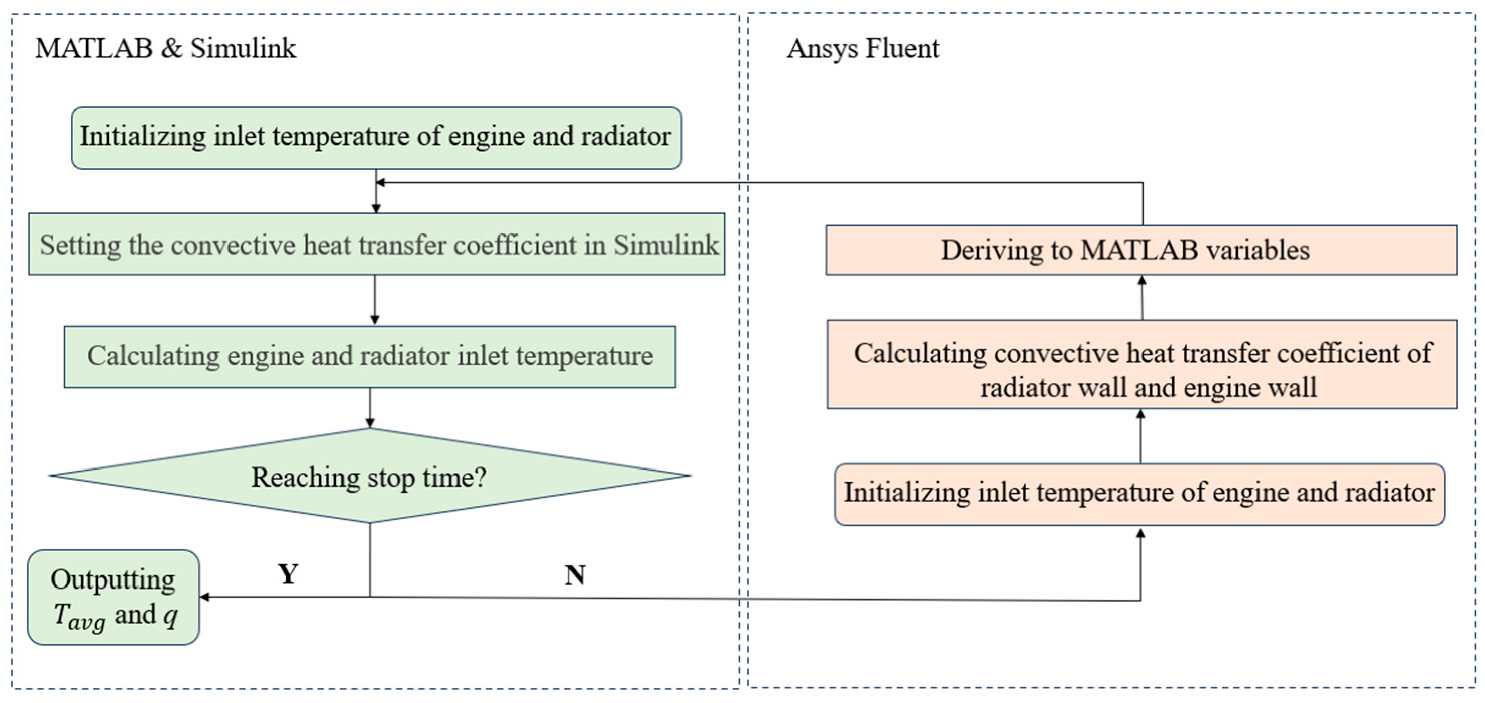 - A 1D/3D co-simulation method for powertrain cooling systems was developed. After sampling coolant and air flow rates, co-simulations were performed, yielding 25 sets of data for average cylinder liner temperature (Tavg) and average heat dissipation (q). Mathematical relationships between Tavg, q, and the two variables were derived using the least squares method.