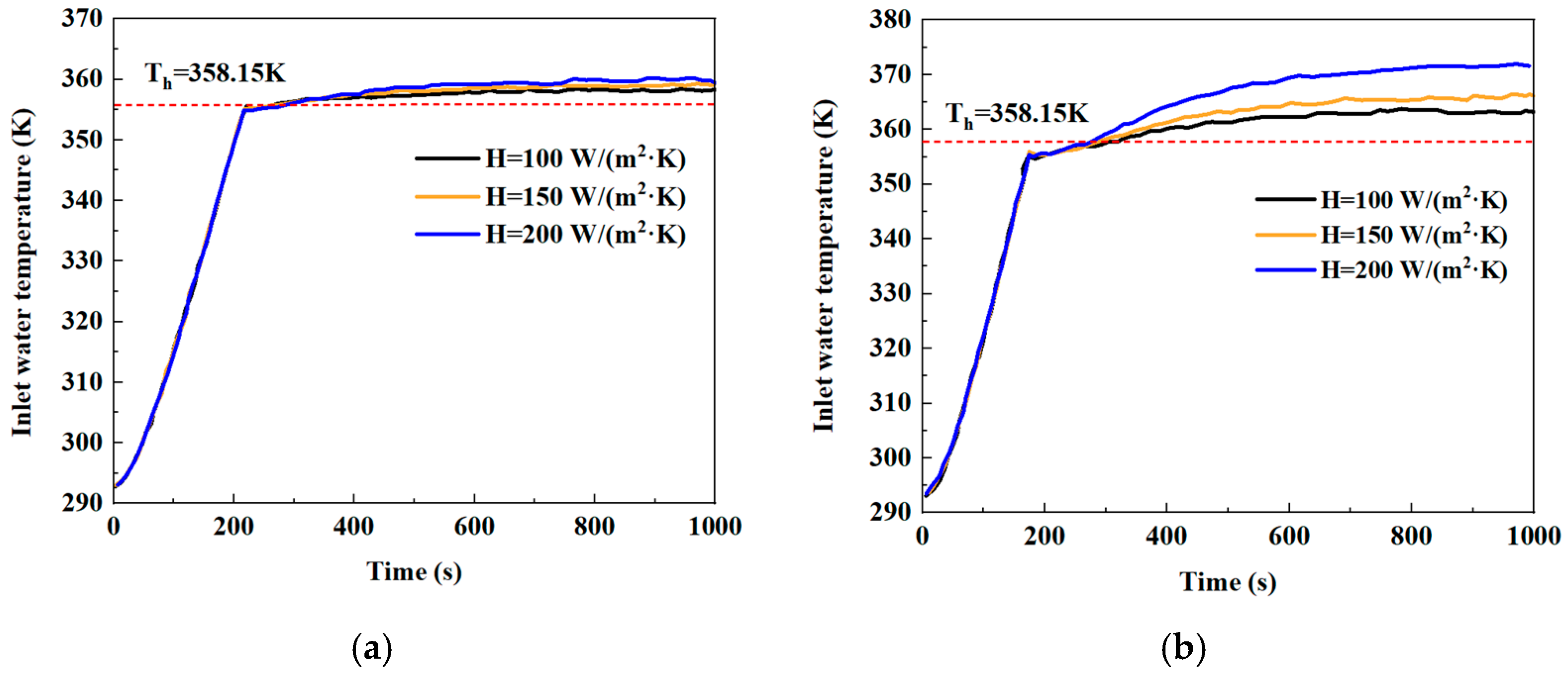 - A 1D simulation model of a powertrain electronic cooling system was established using Simulink, and the engine coolant inlet temperature was observed under varying heat transfer coefficients and engine power conditions.
