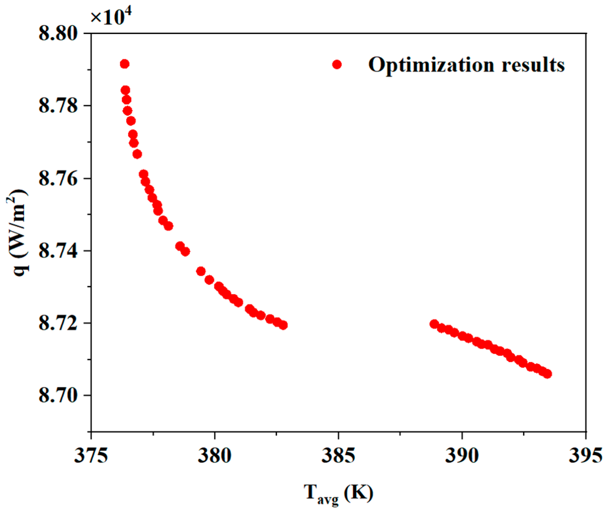 - A multi-objective optimization model for the cooling system was established, with coolant flow rate and air flow rate as decision variables, and average cylinder liner temperature (Tavg) and heat dissipation (q) as optimization objectives. NSGA-II was employed to complete the optimization process under different weight configurations, providing a methodological reference for the development of electronic cooling systems.