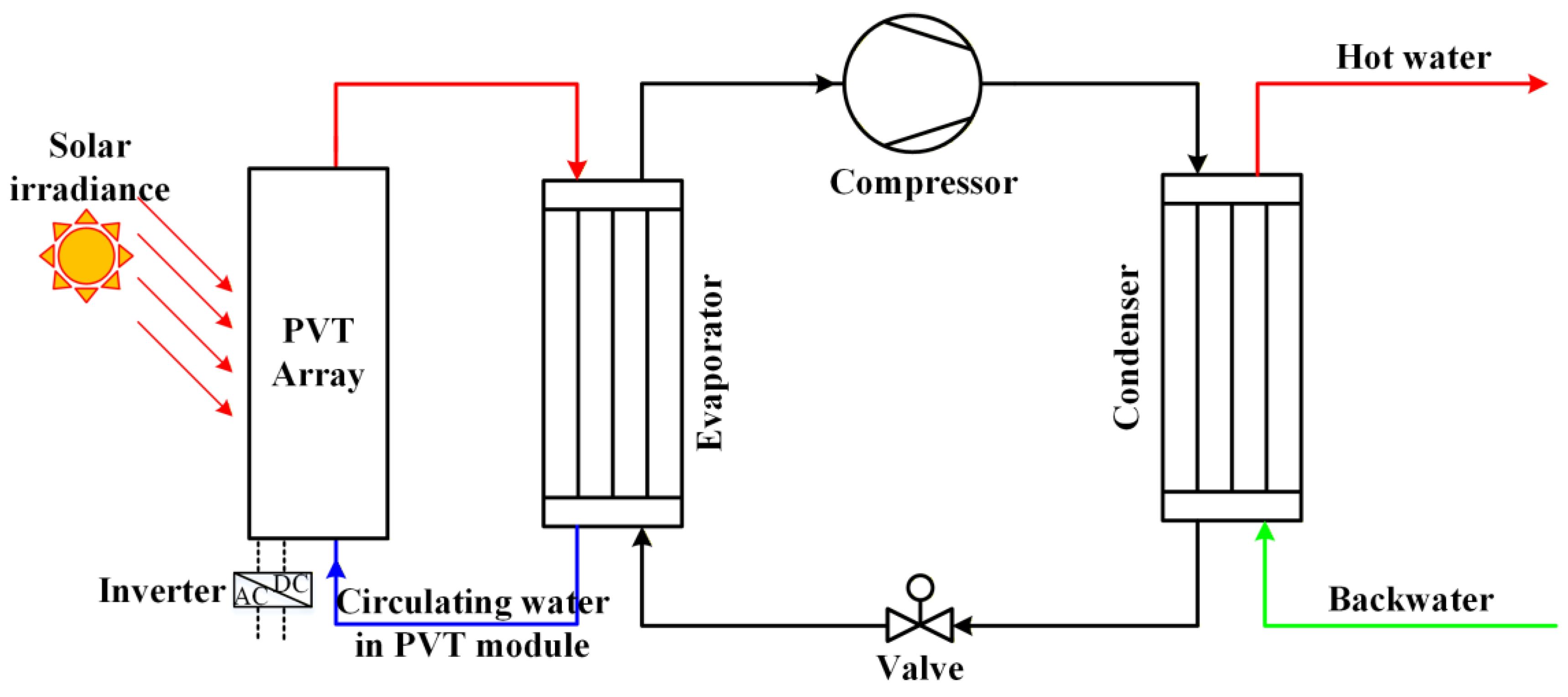 2.2. Principle of Solar PVT Heat Pump System
