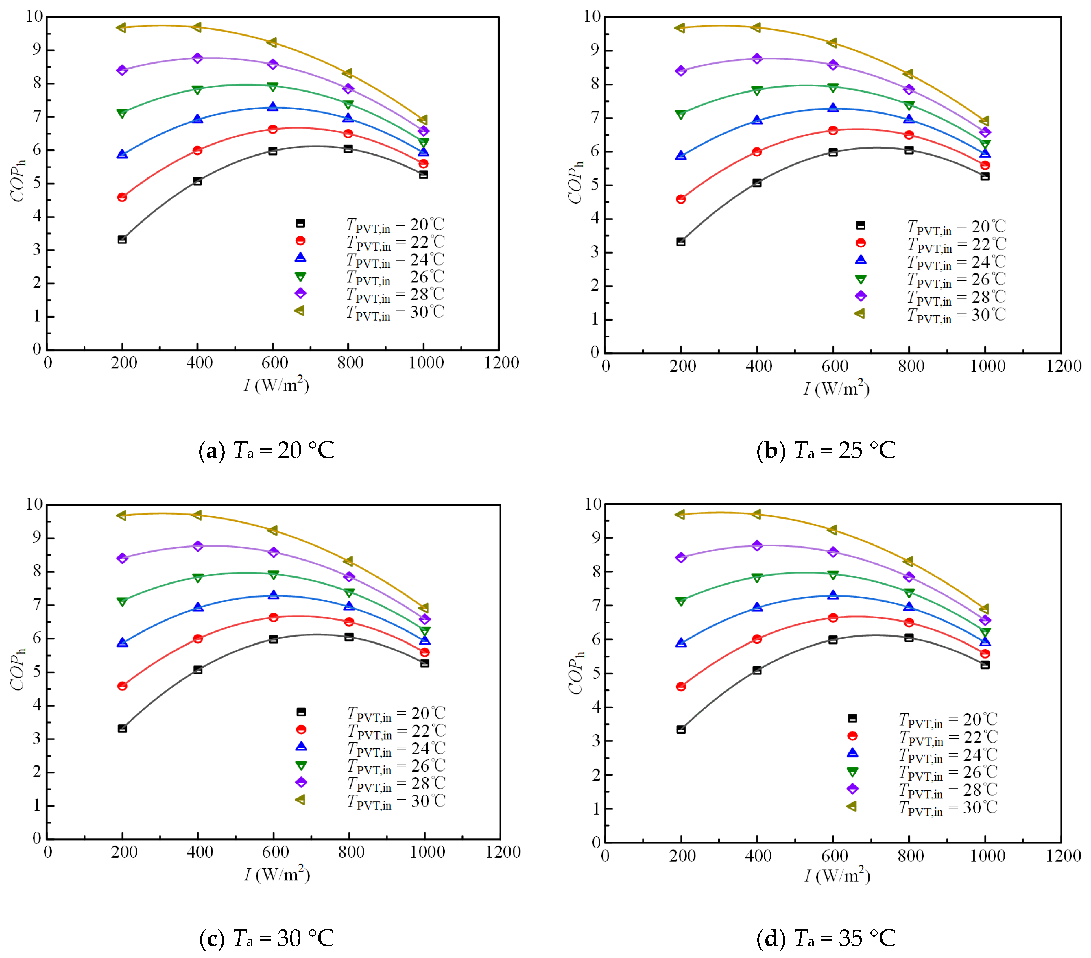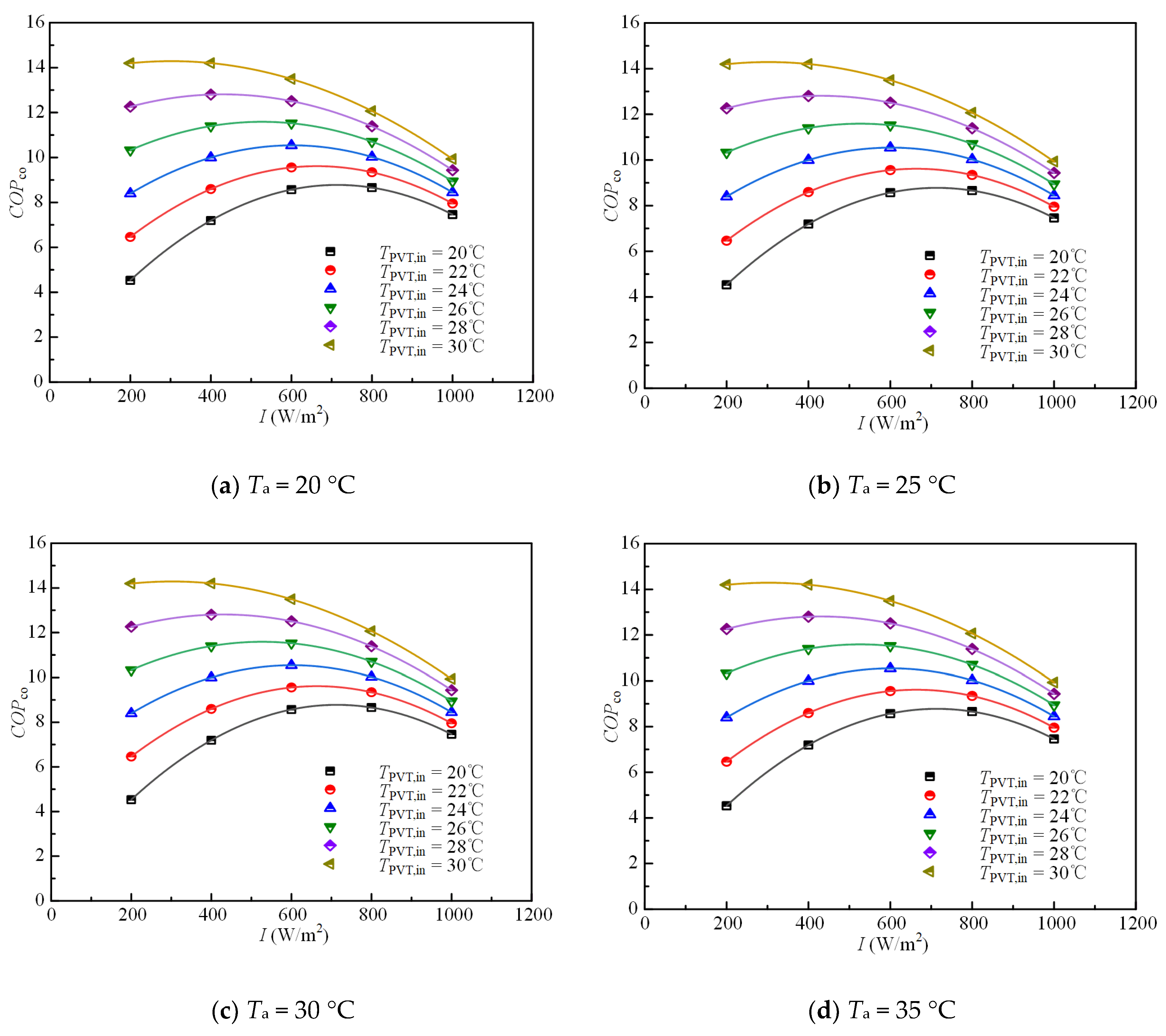 | Ta | ambient temperature (°C) | PVT | photovoltaic thermal |