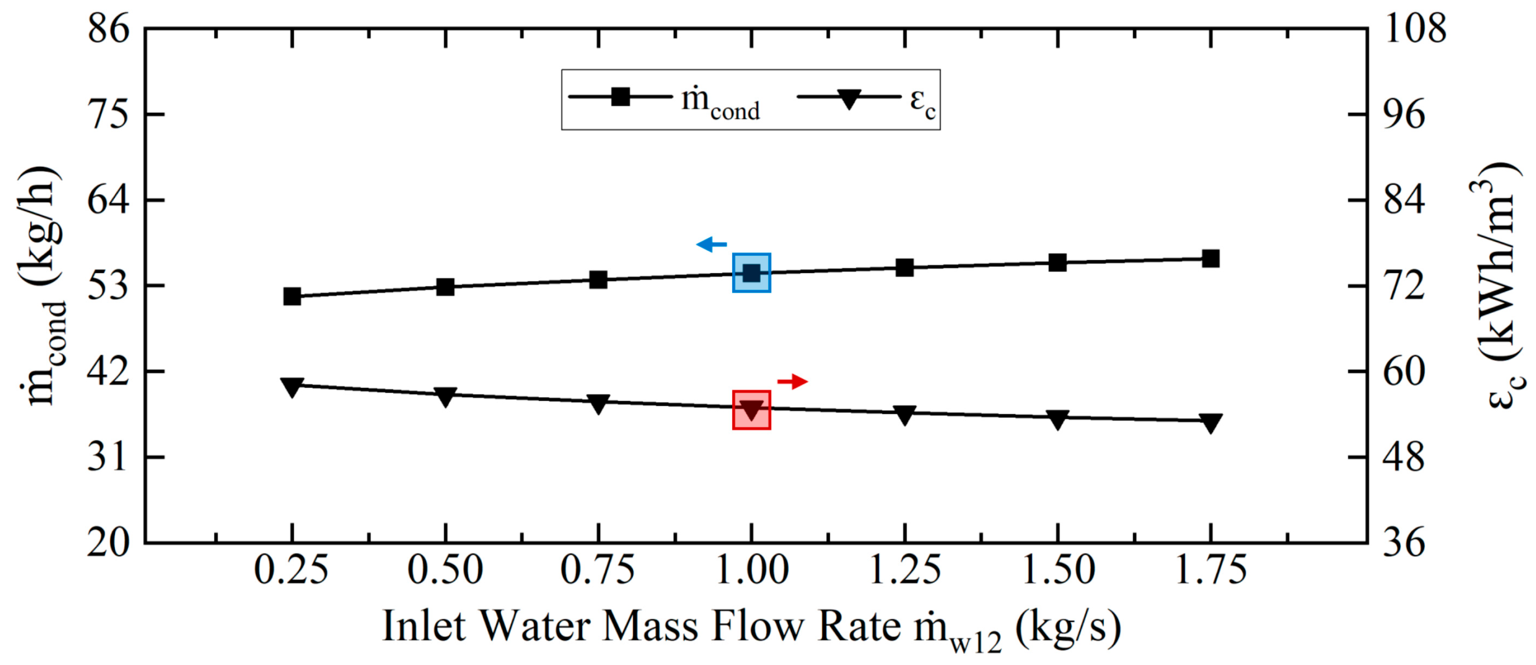 - Total water yield ṁcond (kg/s), which reflects the overall production capacity of the system, defined as follows: