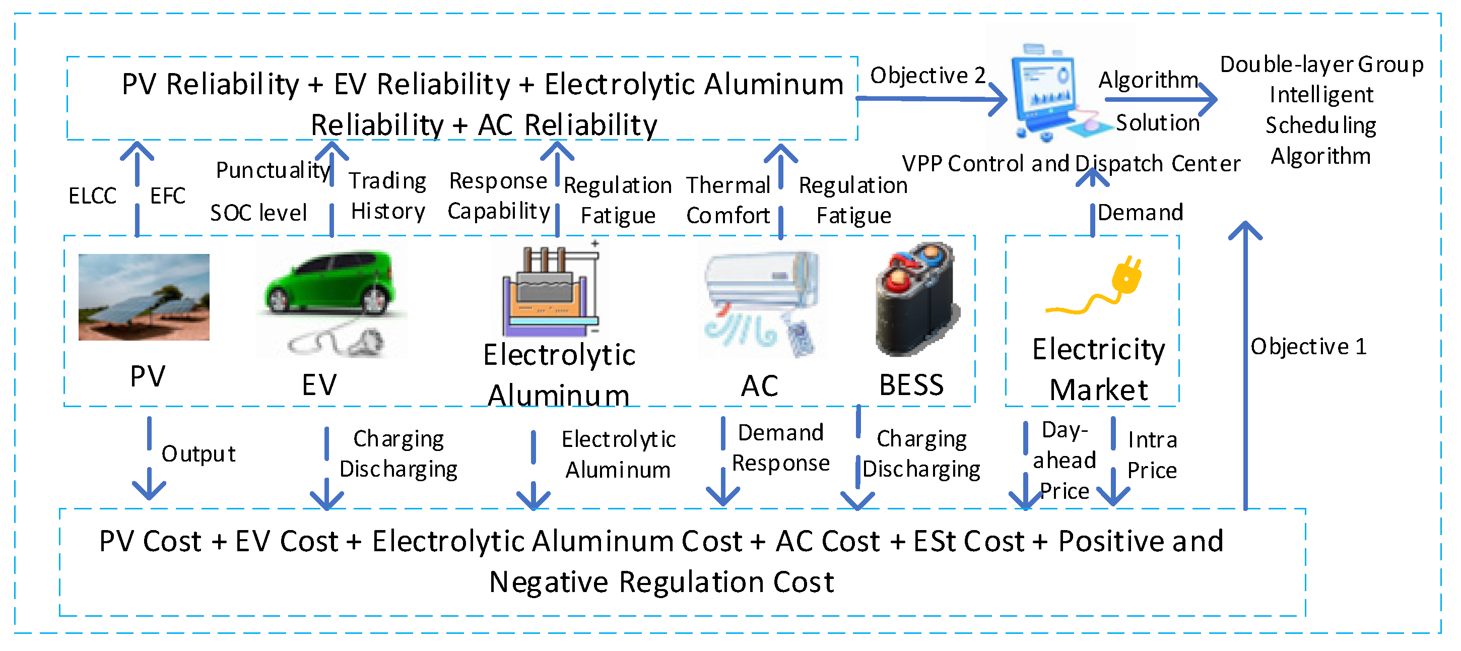 Zhan, J.; Sun, X.; Li, Y.; Sun, W.; Jiang, J.; Gao, Y. Bi-Objective Intraday Coordinated Optimization of a VPP’s Reliability and Cost Based on a Dual-Swarm Particle Swarm Algorithm. Energies 2026, 19, 473. https://doi.org/10.3390/en19020473