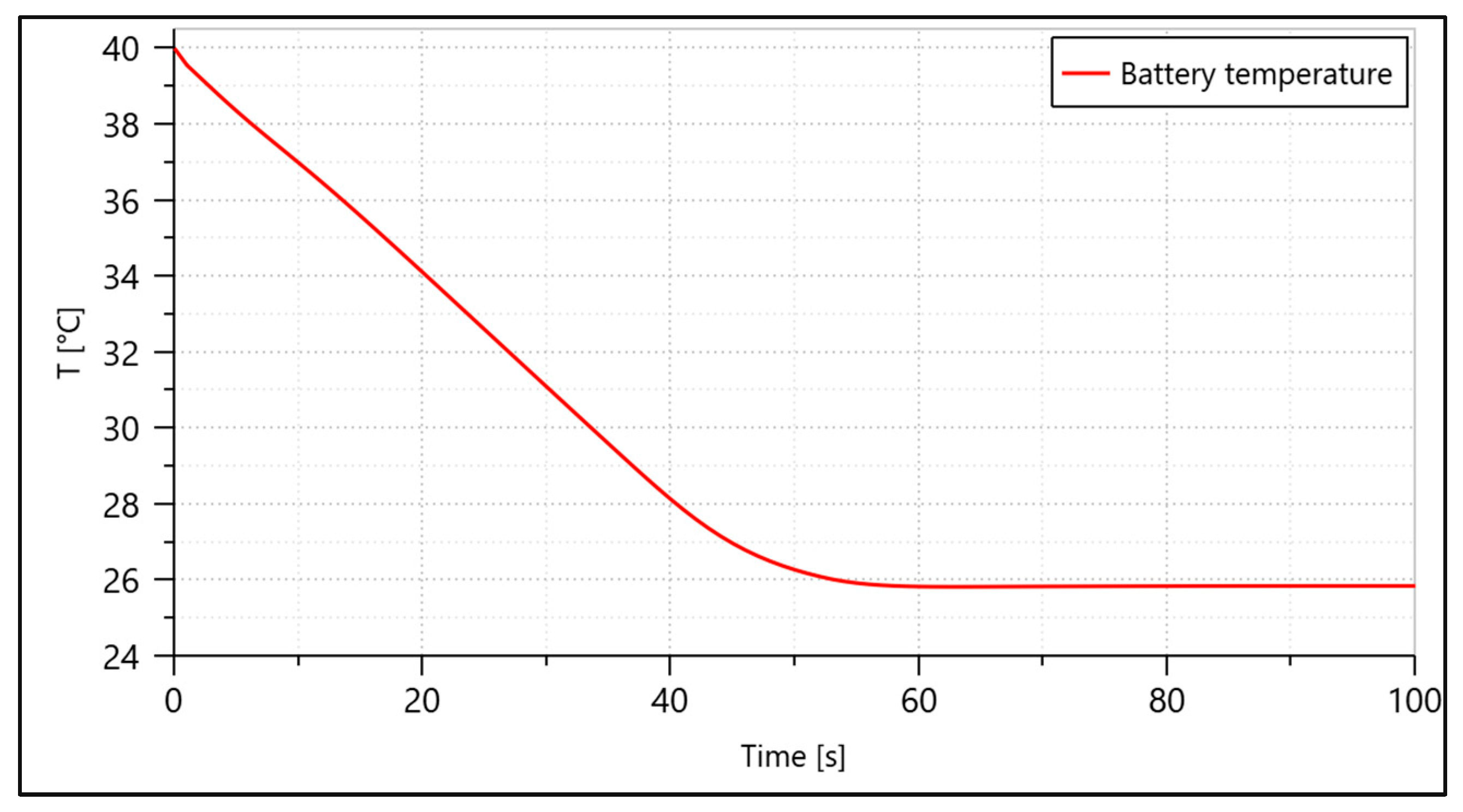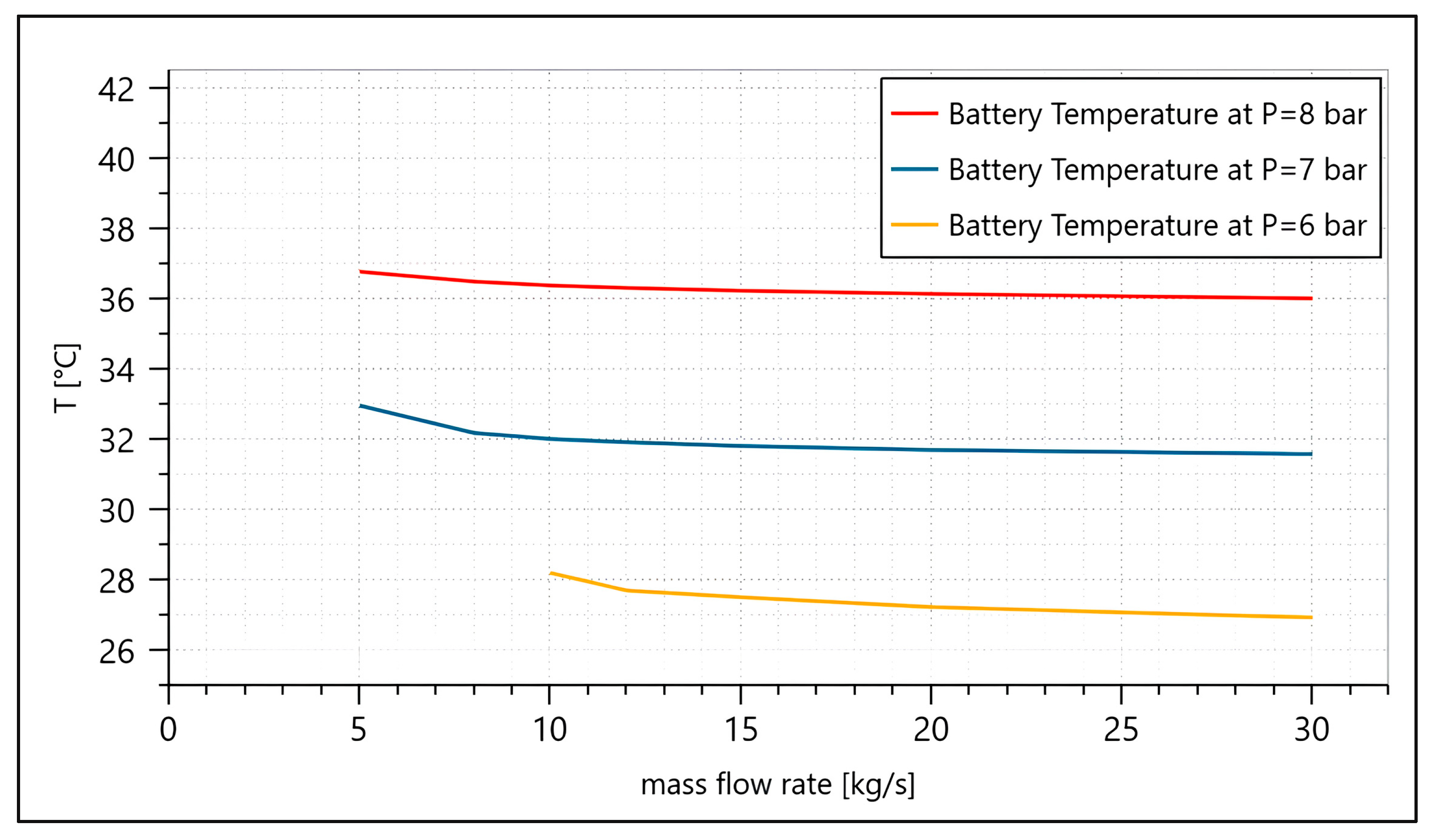 Another factor is the environmental conditions, which typically have a huge impact on system design. The design of the TMS components, especially the heat exchanger, will account for a hot day with a ground temperature of 40 °C. However, the proposed TMS is simulated under three conditions—standard day, hot day, and cold day, as shown in