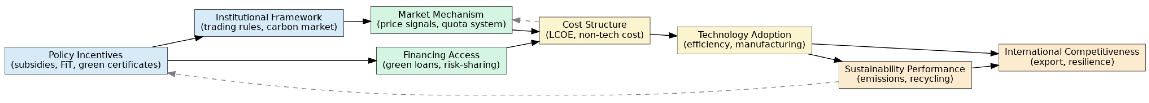 | Institutional Coordination | Institutional–Market | Harmonization of policy, regulation, and market implementation | Urban et al. (2016) [34] |