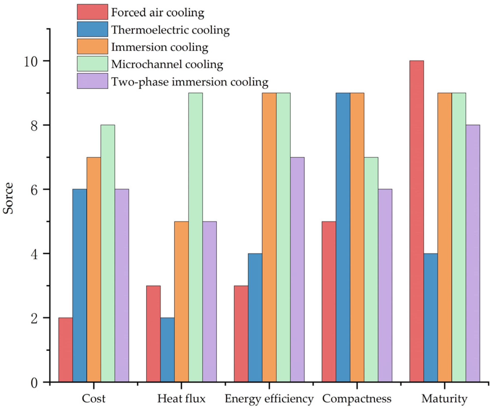 | Thermoelectric cooling | Device-level Board-level Compact system-level | Precise temperature control, High reliability | Low efficiency, Self-generated heat degrades output parameters | Not applicable | 1~10 |