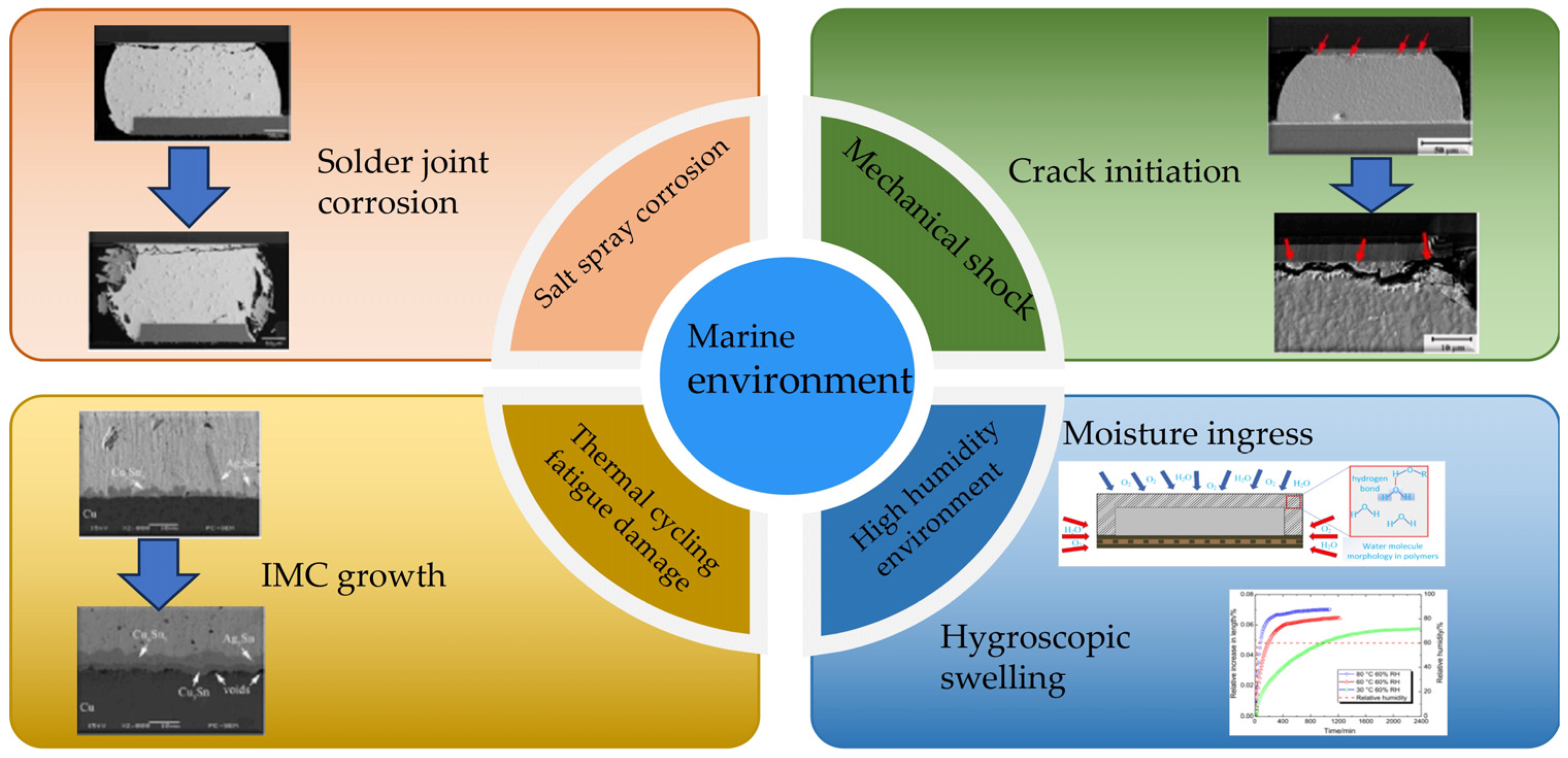 - Zhao, Q.; Liu, X.; Wang, H.; Zhu, Y.; An, Y.; Yu, D.; Qi, J. Research Progress in Corrosion Protection Technology for Electronic Components. Metals 2023, 13, 1508. [Google Scholar] [CrossRef]