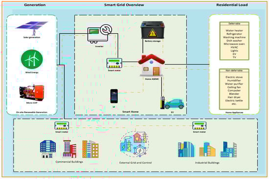 - Ali, A.O.; Elmarghany, M.R.; Hamed, A.M.; Sabry, M.N.; Abdelsalam, M.M. Optimized Smart Home Energy Management System: Reducing Grid Consumption and Costs through Real-Time Pricing and Hybrid Architecture. Case Stud. Therm. Eng. 2024, 64, 105410. [Google Scholar] [CrossRef]