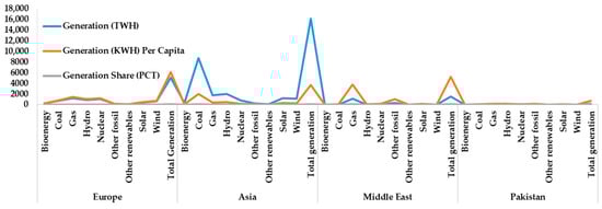 - Regulatory Gaps: Despite the progress in renewable energy adoption, there are still regulatory gaps in Pakistan and the ME. The country has launched multiple solar and wind initiatives, especially in off-grid and rural areas. Community-based solar mini-grids and pilot smart metering projects have emerged under NEPRA’s initiatives and the Alternative Energy Development Board (AEDB) [66]. However, large-scale adoption remains limited due to a lack of infrastructure, inconsistent funding, and public awareness.