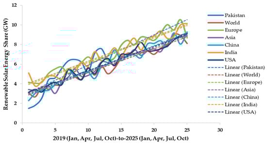 - Ember. Pakistan’s Solar Share of Electricity, 2025; Ember Climate Data Portal: London, UK, 2025. Available online: https://ember-energy.org/countries-and-regions/pakistan/ (accessed on 10 November 2025).