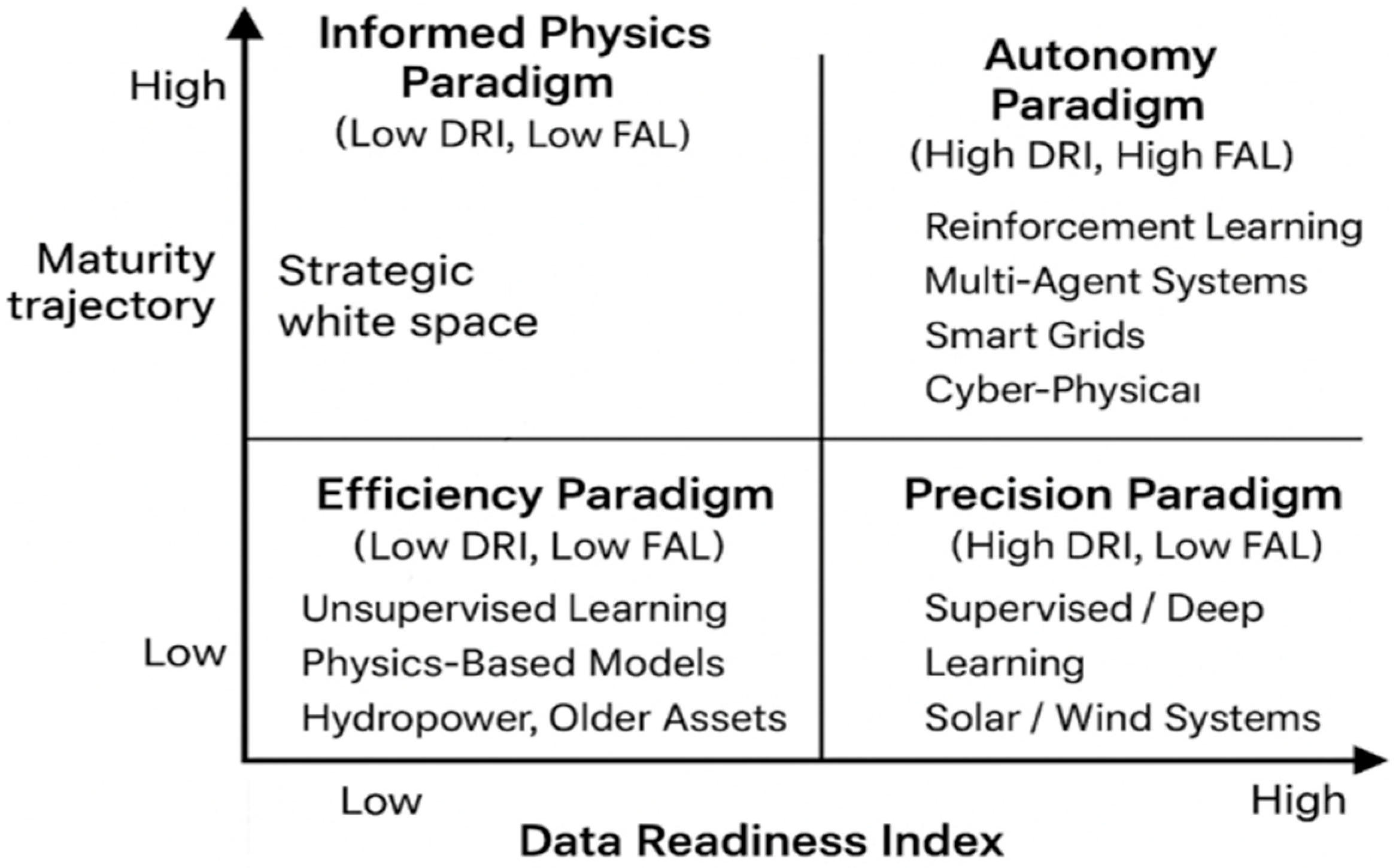 - A novel dual-axis framework that classifies AI techniques by both algorithmic paradigm and functional role (diagnostic, predictive, prescriptive), enabling a structured comparison across energy domains.