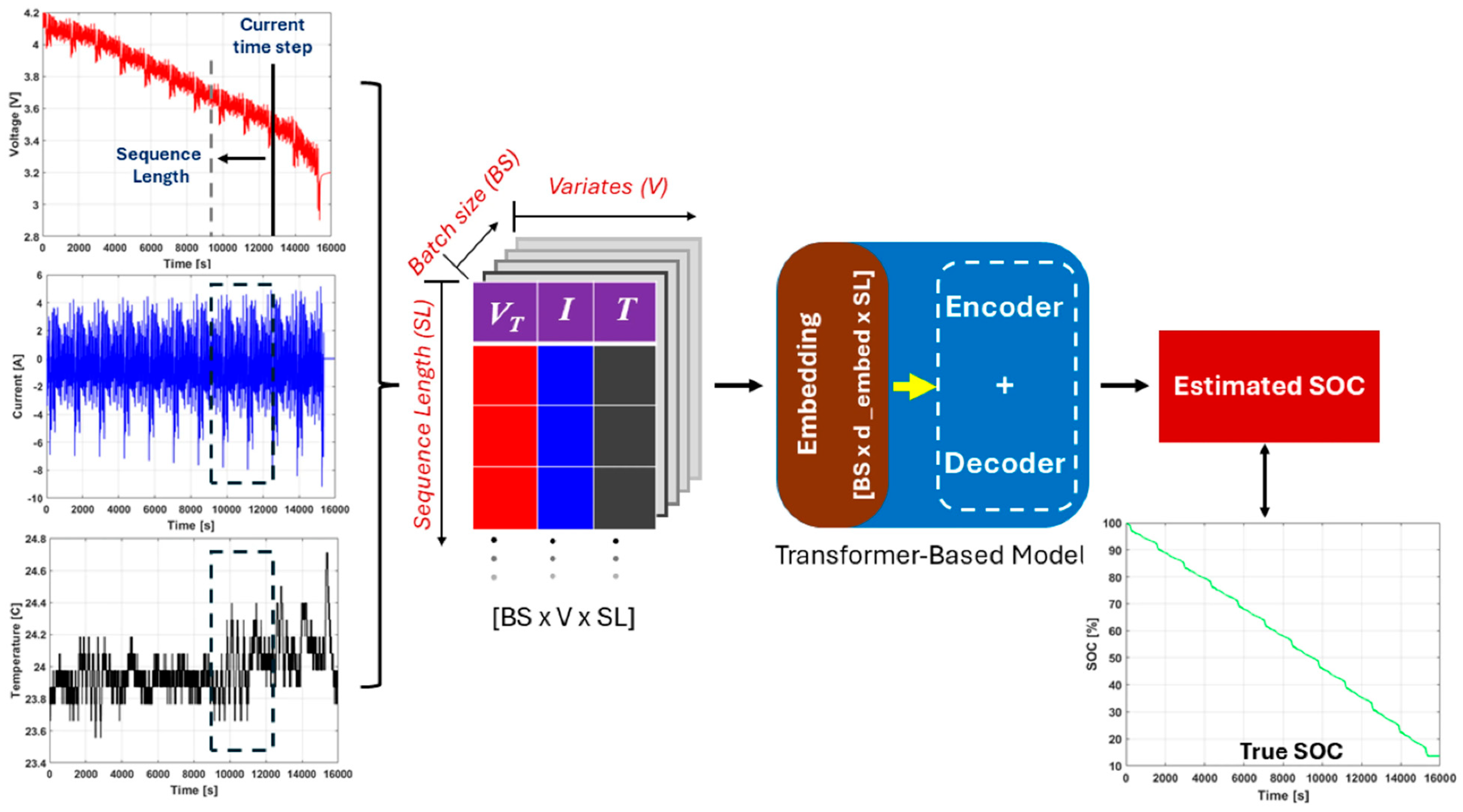 | Real World Transformer | Nakano & Tanaka [86] | Transformer on raw EV driving signals (voltage, speed, SoC) | In-vehicle EV data | MAE = 1.31%, RMSE = 2.08%; attention aligned with driving conditions |
