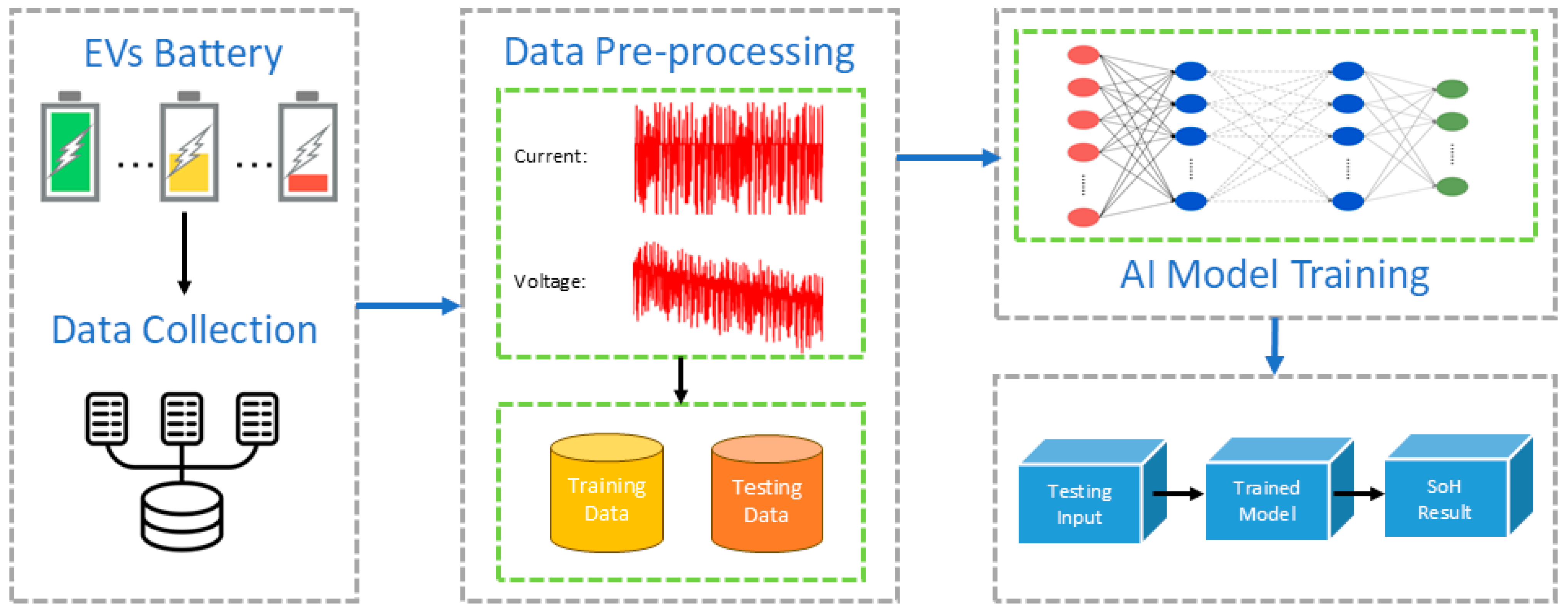 - Zhao, J.; Qu, X.; Wu, Y.; Fowler, M.; Burke, A.F. Artificial intelligence-driven real-world battery diagnostics. Energy AI 2024, 18, 100419. [Google Scholar] [CrossRef]