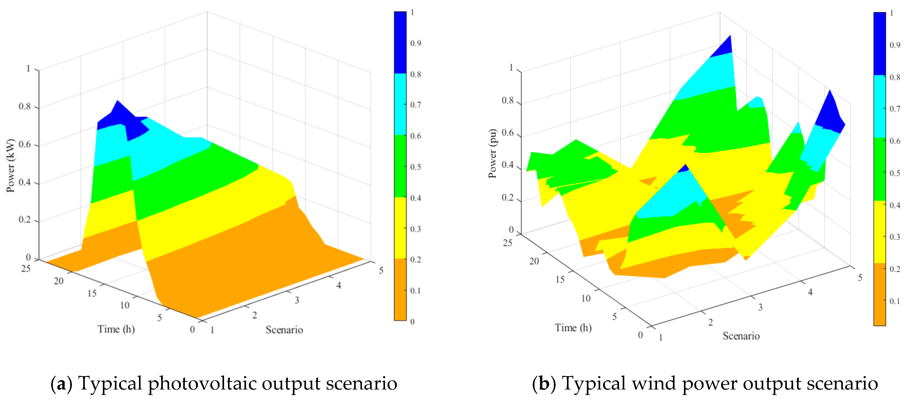 - Zheng, K.; Sun, Z.; Song, Y.; Zhang, C.; Zhang, C.; Chang, F.; Yang, D.; Fu, X. Stochastic scenario generation methods for uncertainty in wind and photovoltaic power outputs: A comprehensive review. Energies 2025, 18, 503. [Google Scholar] [CrossRef]