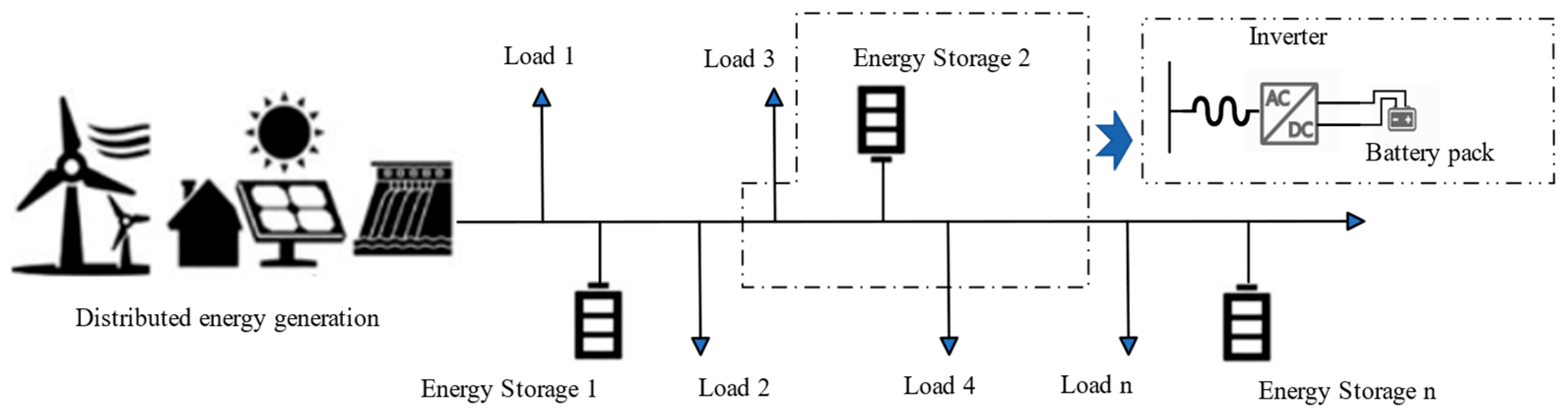 - Du, P.; Mi, Z.; Jia, Y.; Lin, L. Optimal placement and capacity of distributed energy storage in distribution system based on the sensitivity variance of network loss. Power Syst. Prot. Control 2019, 47, 103–109. [Google Scholar]