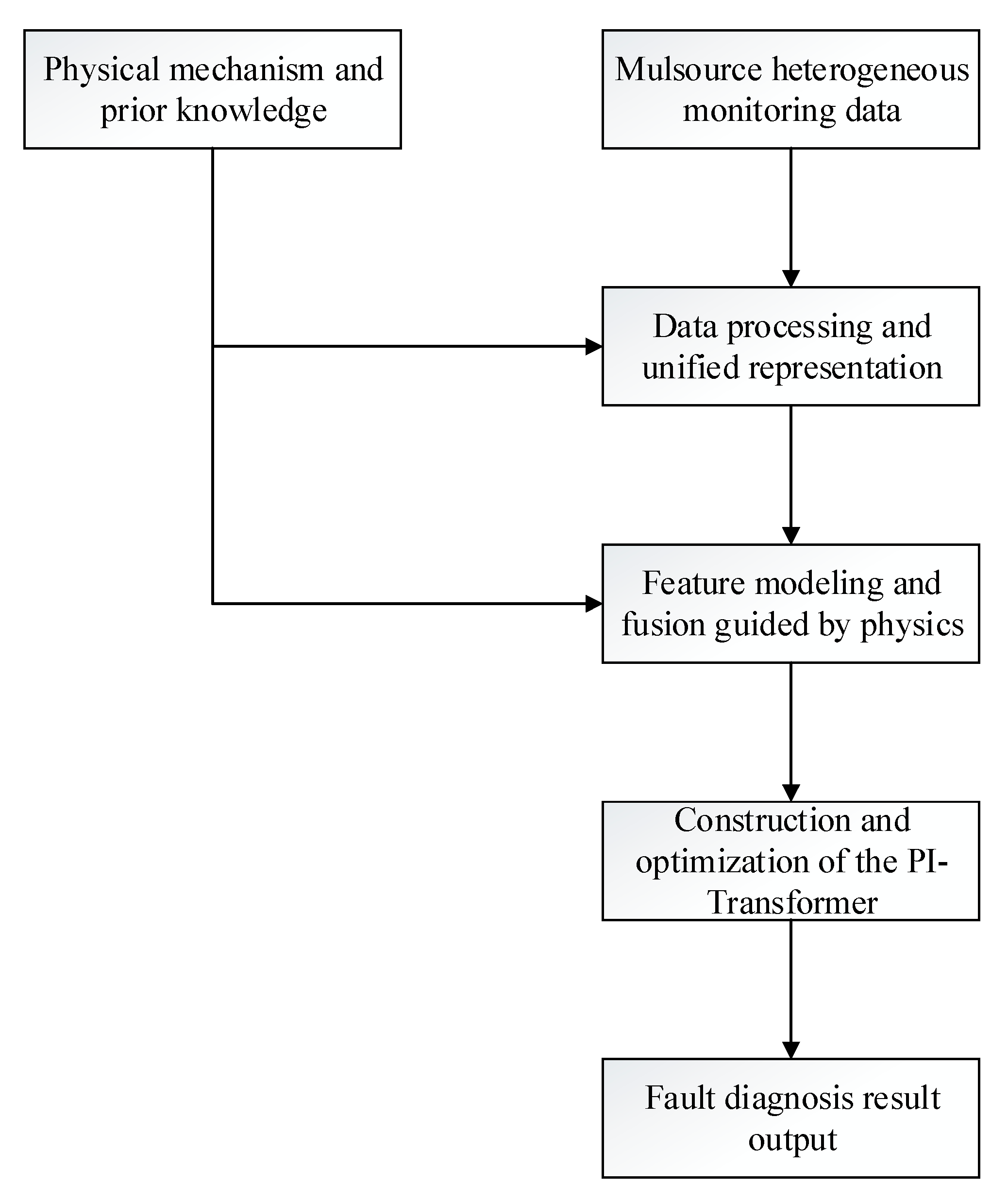 This section proposes an innovative physics-informed enhanced transformer (PI-Transformer). The core idea is deep integration of physical priors (thermodynamic laws, fault evolution patterns) into the deep learning framework. The model employs a four-layer architecture: Input Layer, Encoding Layer, Diagnostic Layer, and Optimization Layer, achieving unity between data-driven and mechanistic models. The algorithm flowchart is shown in
