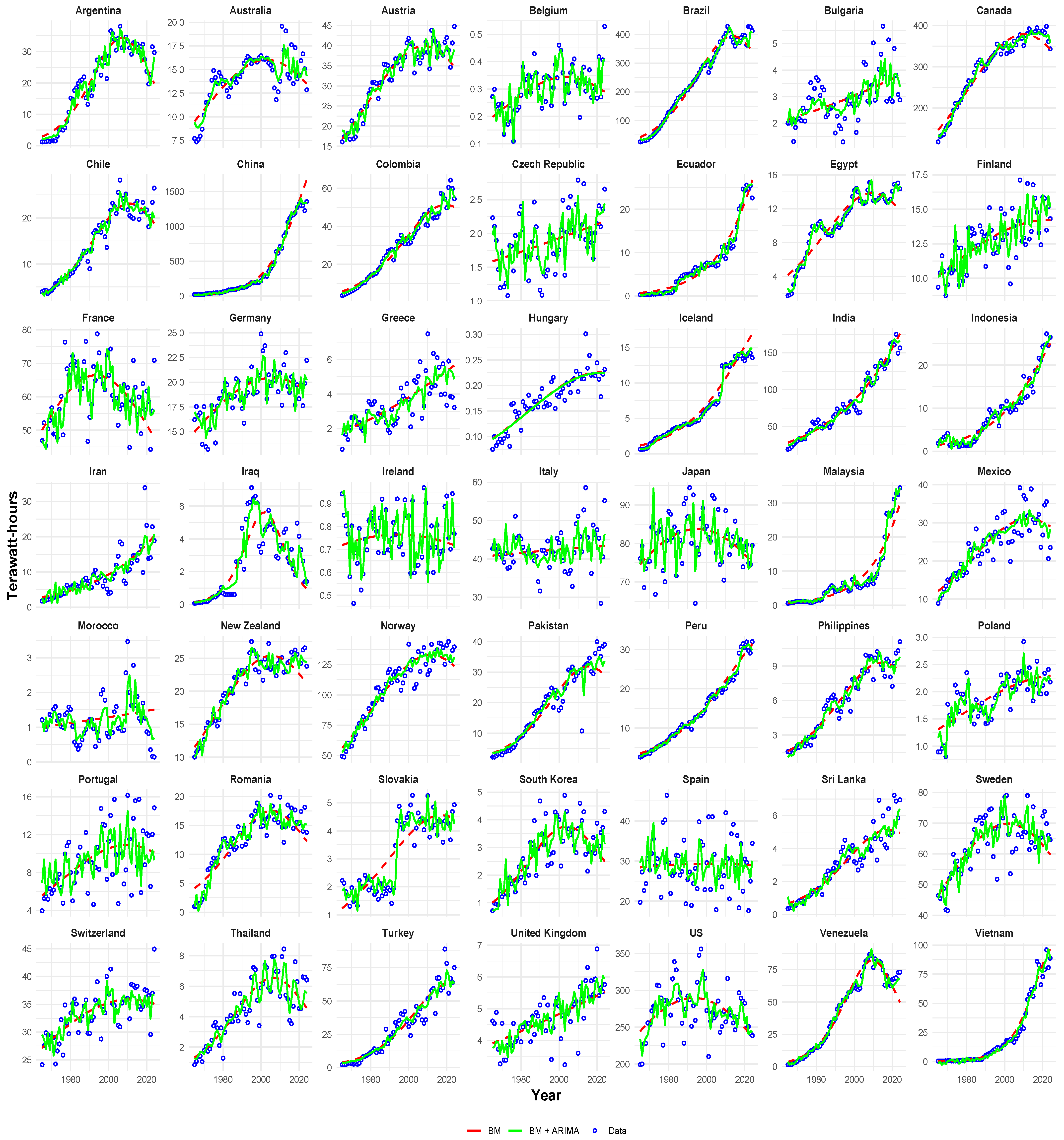 - Ahmad, F.; Finos, L.; Guidolin, M. Forecasting Hydropower with Innovation Diffusion Models: A Cross-Country Analysis. Forecasting 2024, 6, 1045–1064. [Google Scholar] [CrossRef]