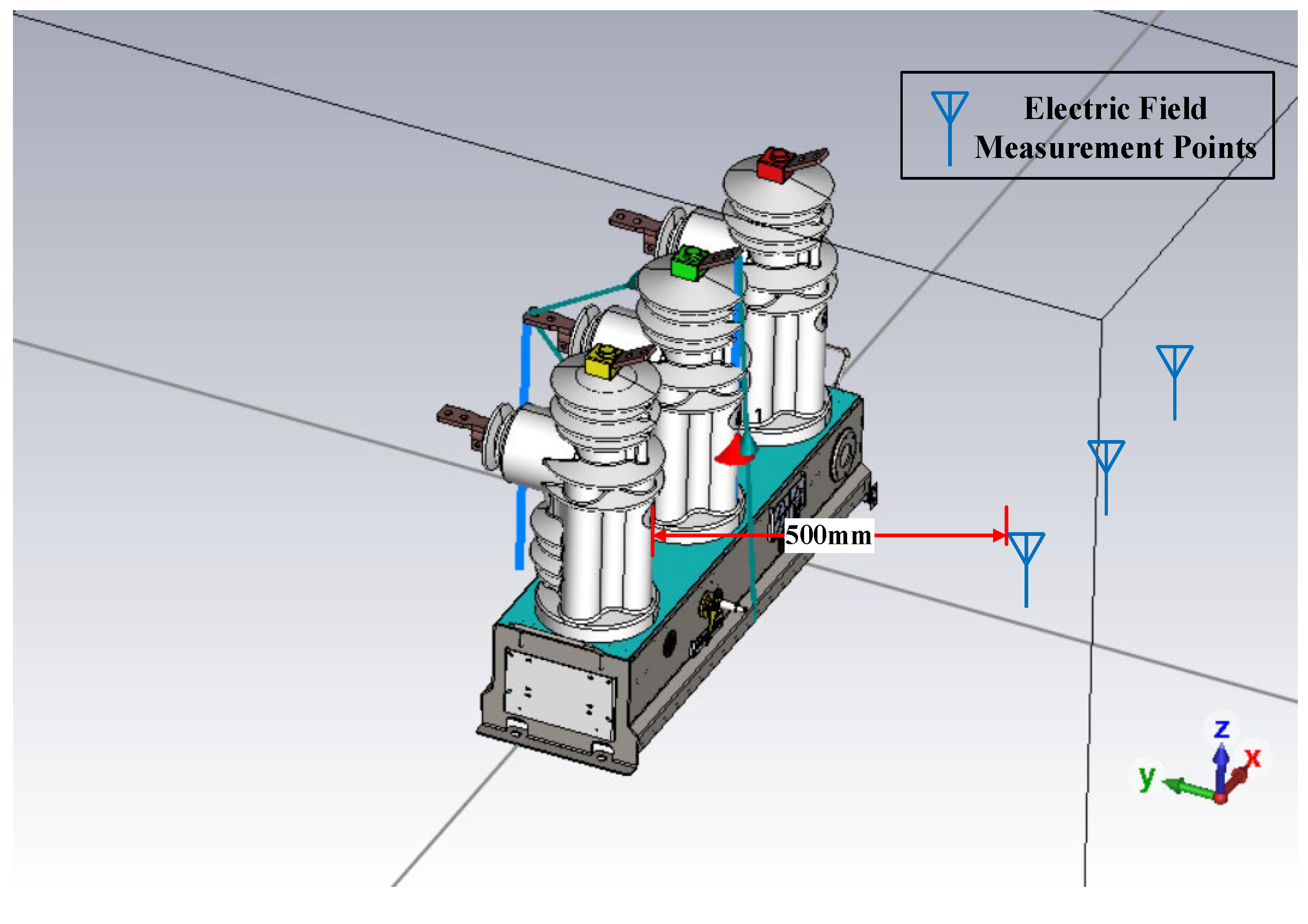 - Zhou, F.; Wu, Y.; Gu, L.; Qin, D.; Jiao, C.; Du, Z.; Deng, Z.; Jiang, Z.; Huang, J. Test and Analysis on Electromagnetic Disturbance of Digital Unit of Primary–Secondary Integrated 10 kV Circuit Breaker. IEEE Access 2023, 11, 140395–140405. [Google Scholar] [CrossRef]