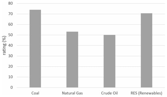 Hard coal, like any other energy solution, has both advantages and limitations. Figure 1 presents a comparative analysis (conducted in paper [1]) of the suitability of the used fuels with regard to the adopted evaluation criteria. Among the greatest advantages of coal are its price and energy security. According to various forecasts and indicators, the price of coal can be expected to gradually increase. Despite this, this raw material will still remain one of the cheapest available energy sources [1]. Figure 2 presents a summary assessment of the compared energy sources.