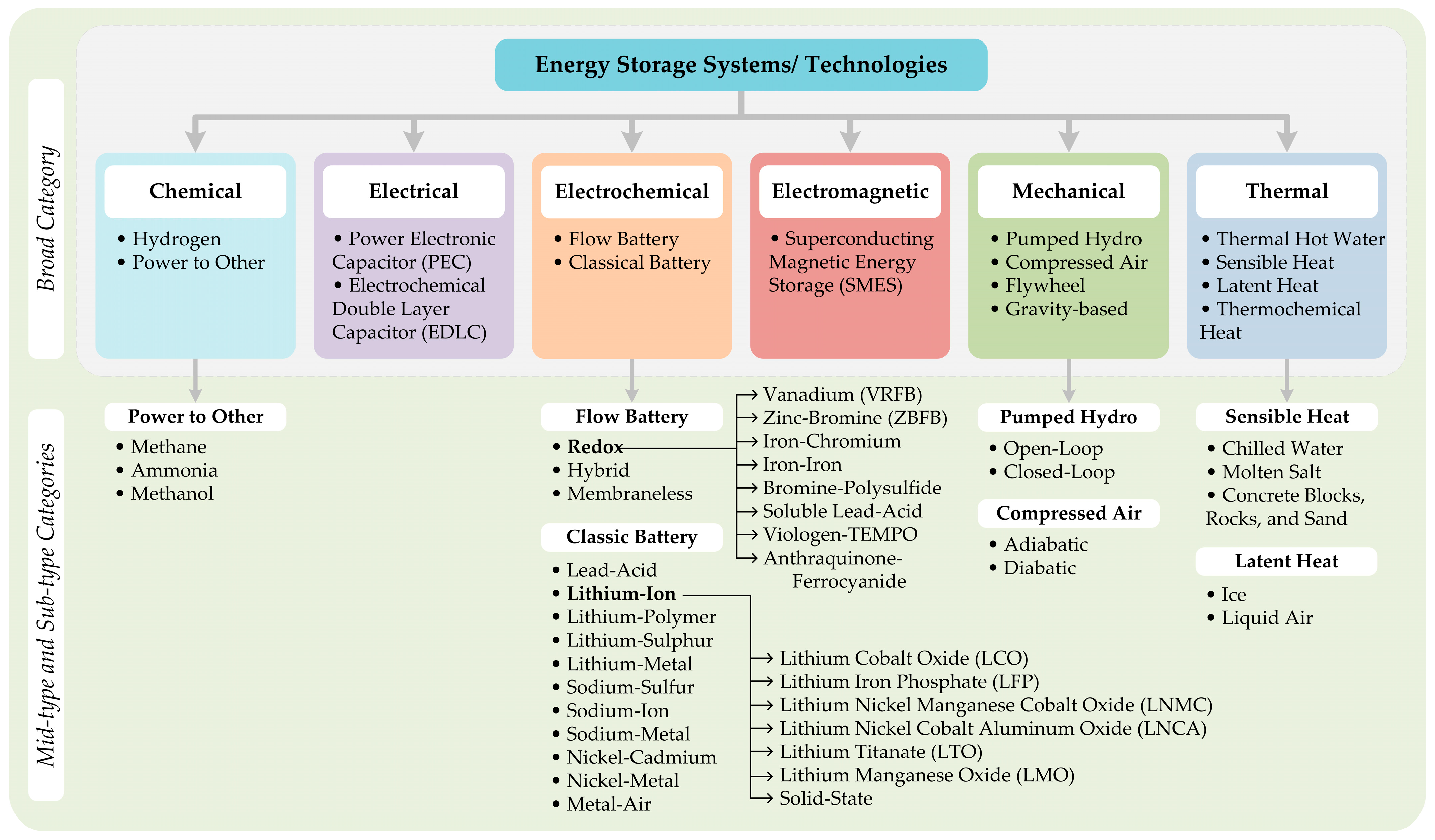 2.1. Classification of Major Energy Storage Systems