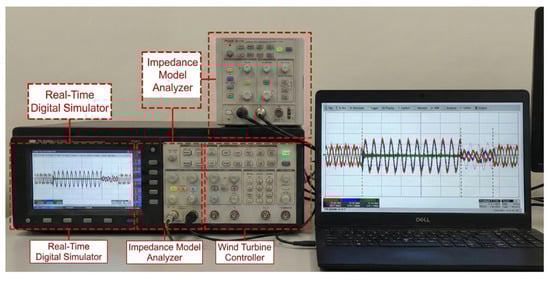 For the purpose of assessing the practical applicability and real-time performance of the proposed algorithm, a Controller-Hardware-in-the-Loop (CHIL) test platform based on RTDS was established, as illustrated in Figure 11. The experimental configuration is consistent with the scenarios described in Figure 6. Specifically, a single-phase-to-ground fault was initiated at the grid connection point of the wind turbine at Node 5 at 0.05 s, followed by a two-phase short-circuit-to-ground fault involving transition impedance at 0.28 s. The dynamic bus voltage waveforms captured from the hardware-in-the-loop (HIL) test are presented in Figure 12. It can be observed that the voltage trajectories measured in the hardware environment exhibit a high degree of consistency with the software simulation results under different fault conditions. These results support the validity of the proposed full-time-domain calculation method and suggest its capability to maintain computational accuracy within real-time hardware constraints.