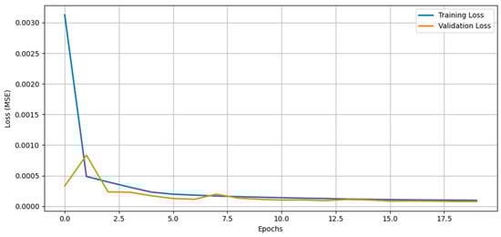 Figure 20, the training vs. validation loss curve of the tuned LSTM–RNN model, shows a sharp decline in both losses over the first few epochs, followed by stable convergence with a slight gap between them. The model’s adaptation to temperature-driven variance in the data is reflected in the validation loss’s initial slight fluctuation, but after hyperparameter tuning, the losses closely align, indicating faster convergence, lower final MSE, less overfitting, and improved generalization to unseen temperature conditions.