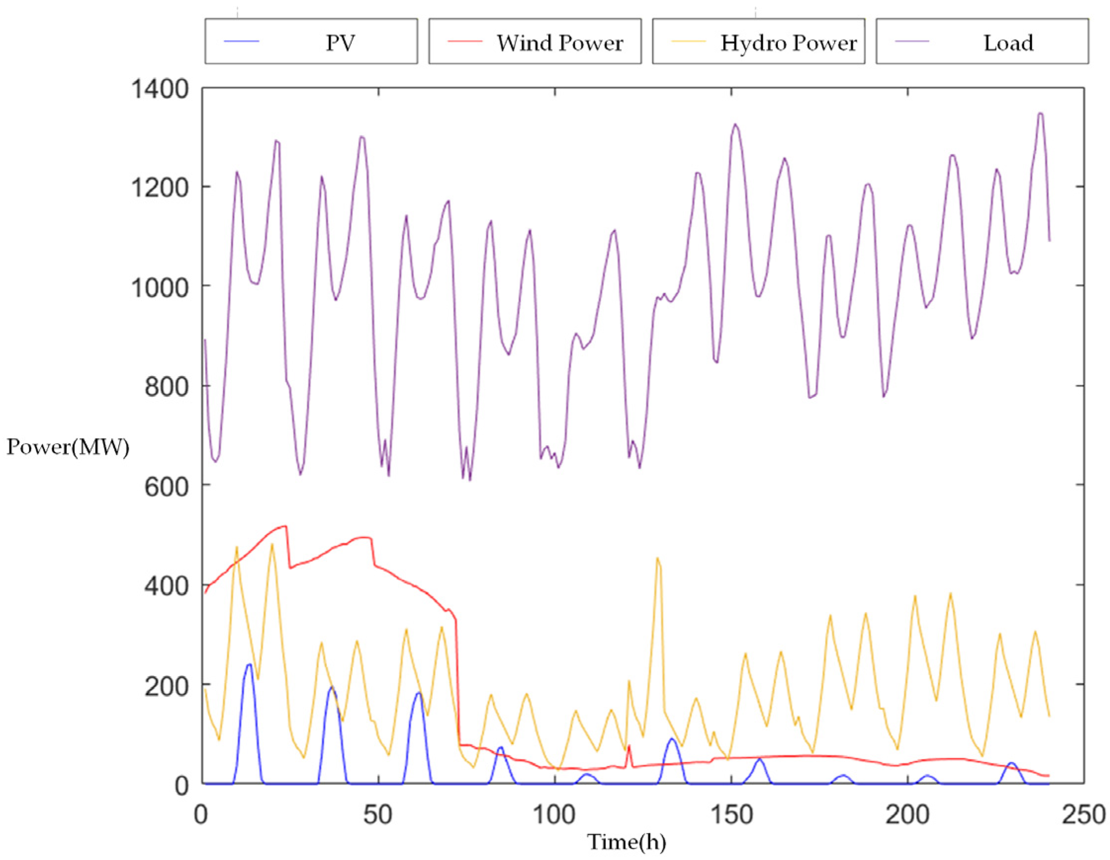 - Hu, Y.Y.; Wei, X.; Yang, X.; He, J.L.; Yuan, S.B. Dispatching of Wind-Photovoltaic Hybrid Power Systems Based on Bilevel Programming and Sparse Optimization. IEEE Access 2024, 12, 164289–164302. [Google Scholar] [CrossRef]